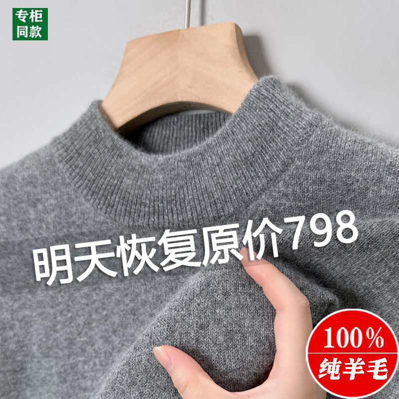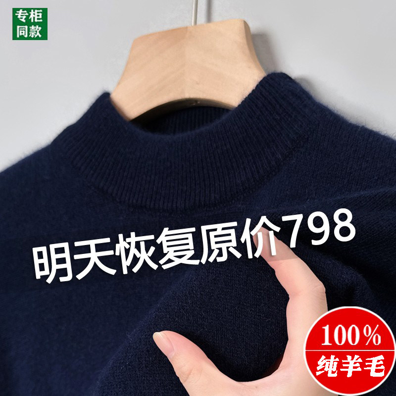 鄂尔多斯市100%纯羊毛男士半高领毛衣冬季加厚针织打底休闲羊毛衫