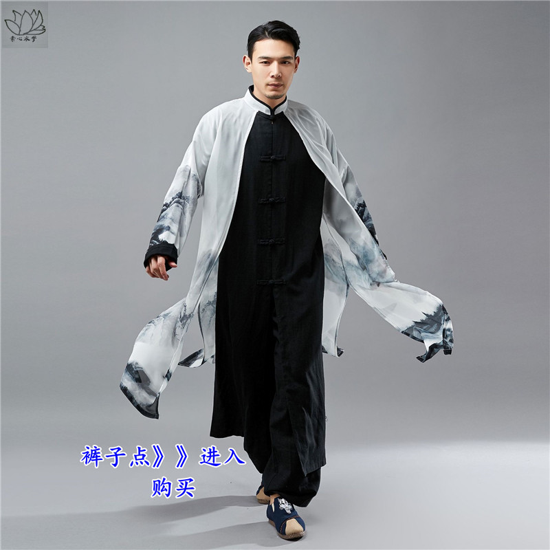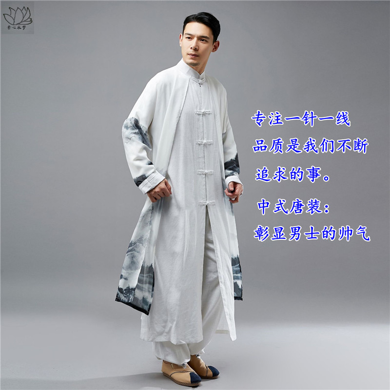 汉服男装薄款印花复古风衣长衫男士仙气长袍中国风假两件外套春秋