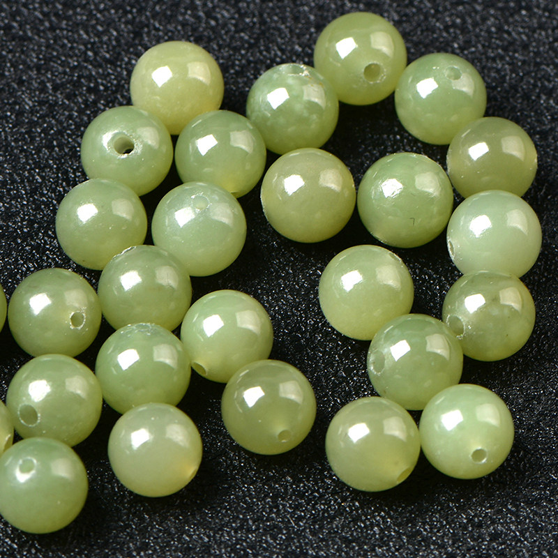 天然和田玉散珠子羊脂白晴水绿青白玉diy手工饰品配件手链材料