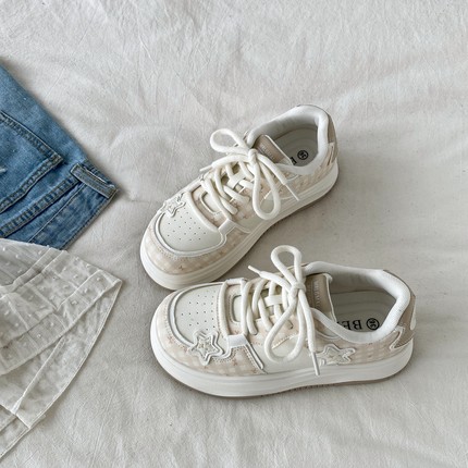喜叔复古五角星厚底小白鞋女2026春季新款百搭面包板鞋运动休闲鞋