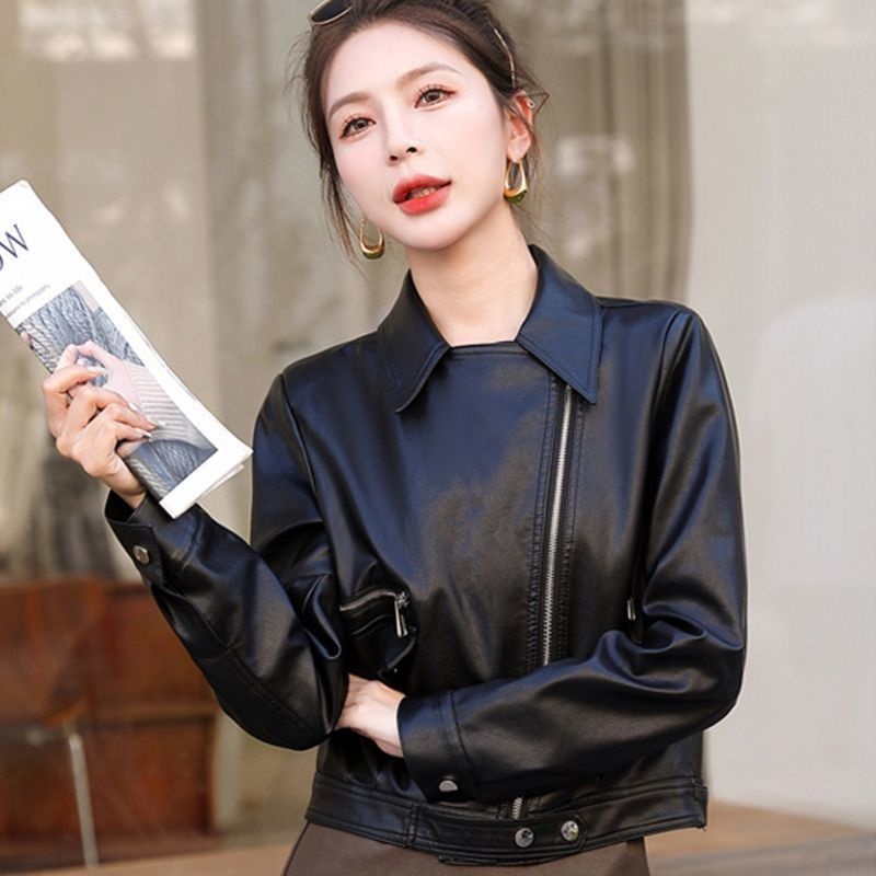 2025春秋新款皮衣外套女短款机车服爆款休闲小个子pu皮西装领夹克