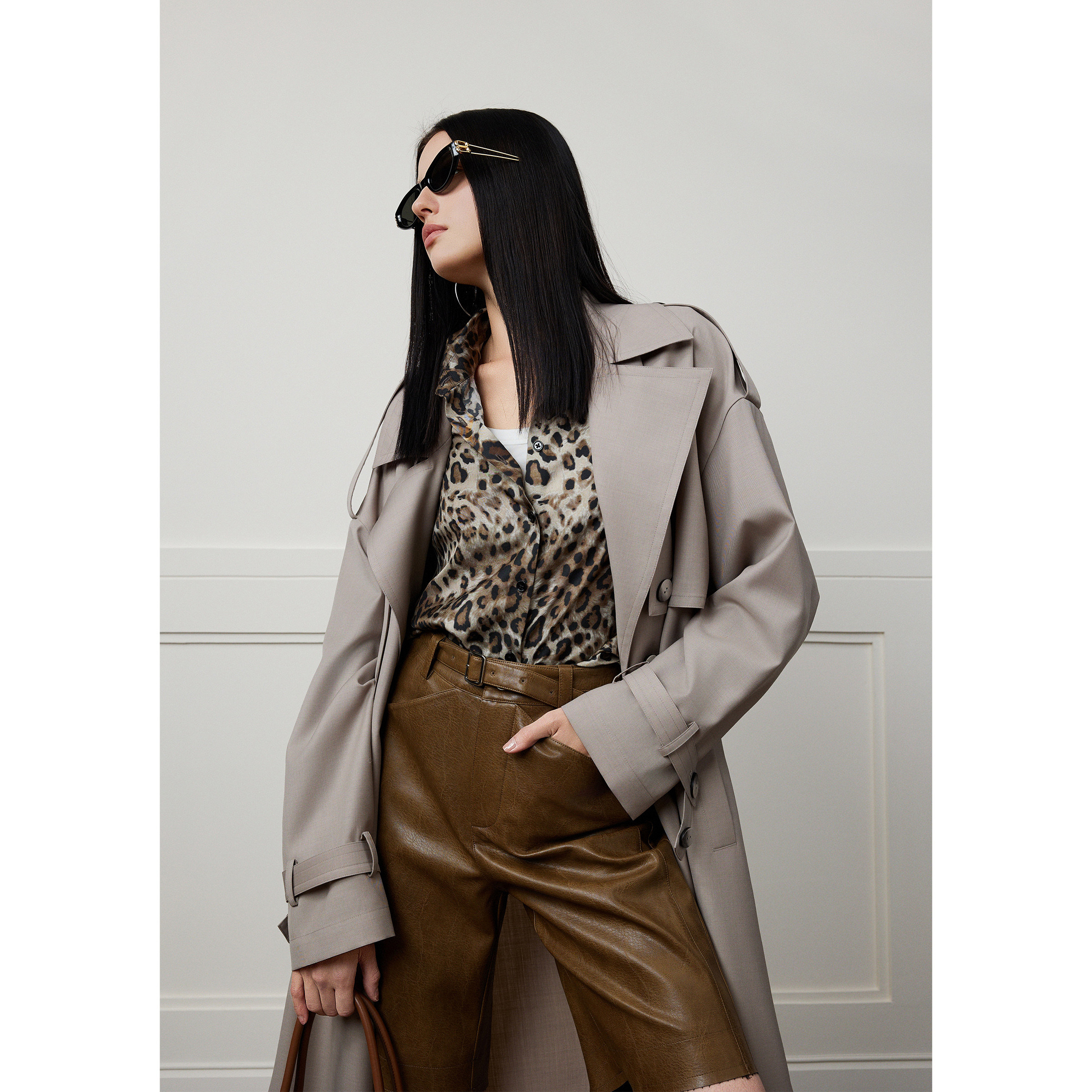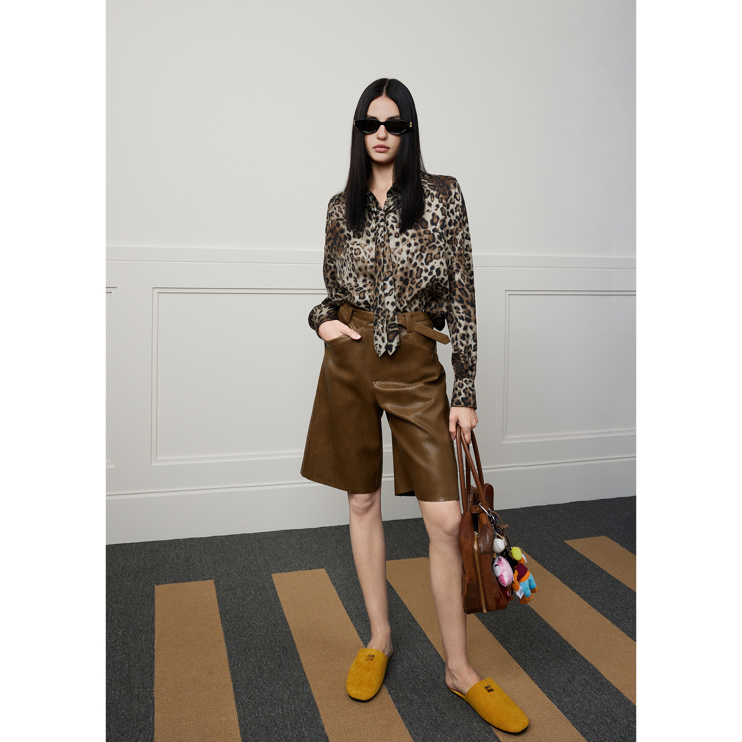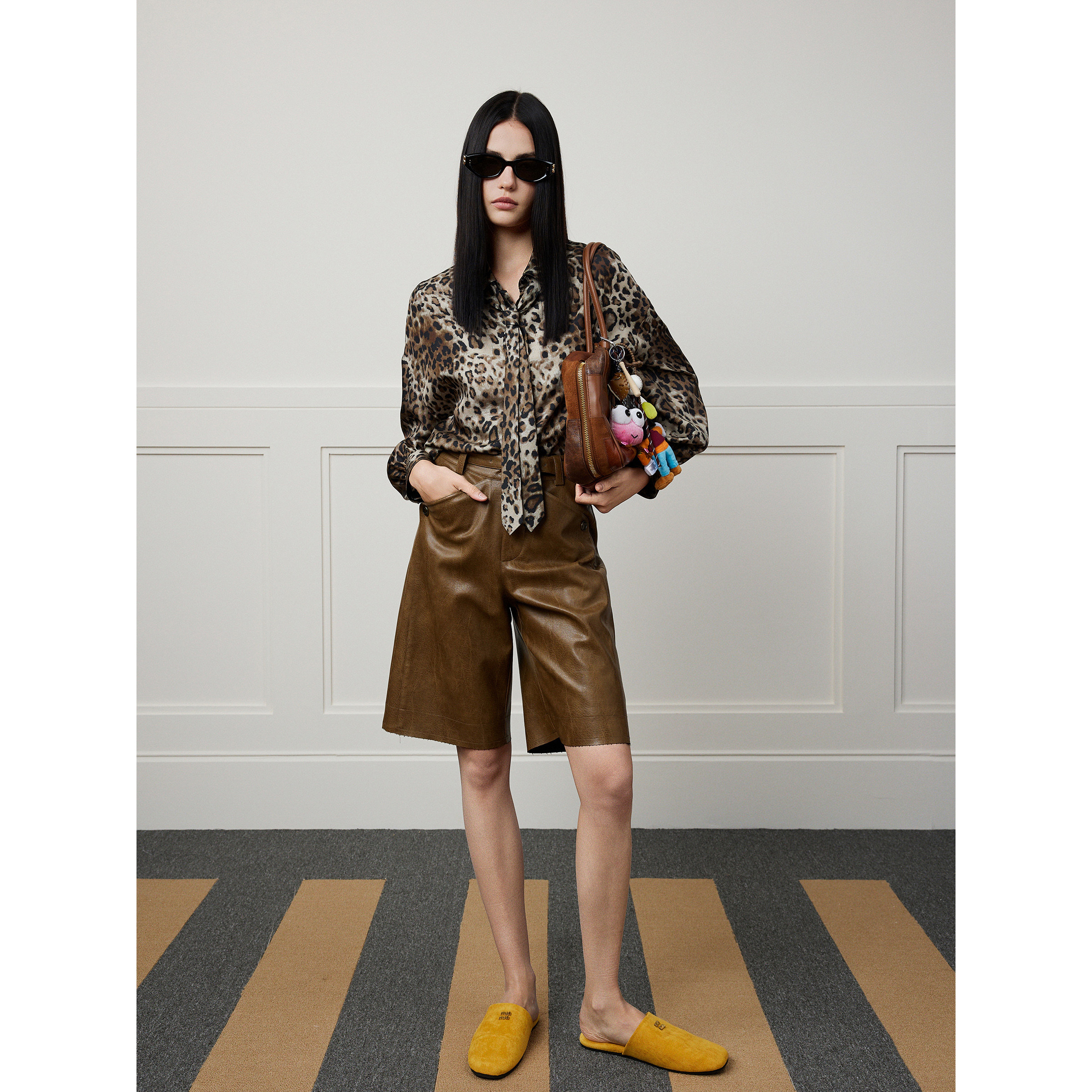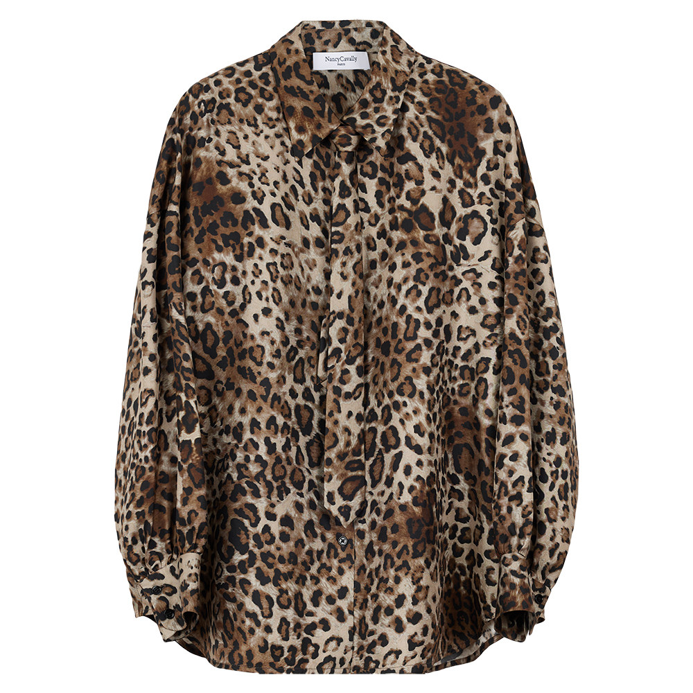 NancyCavally专柜款16MM斜纹绸真丝 野性复古领带+廓形豹纹衬衫