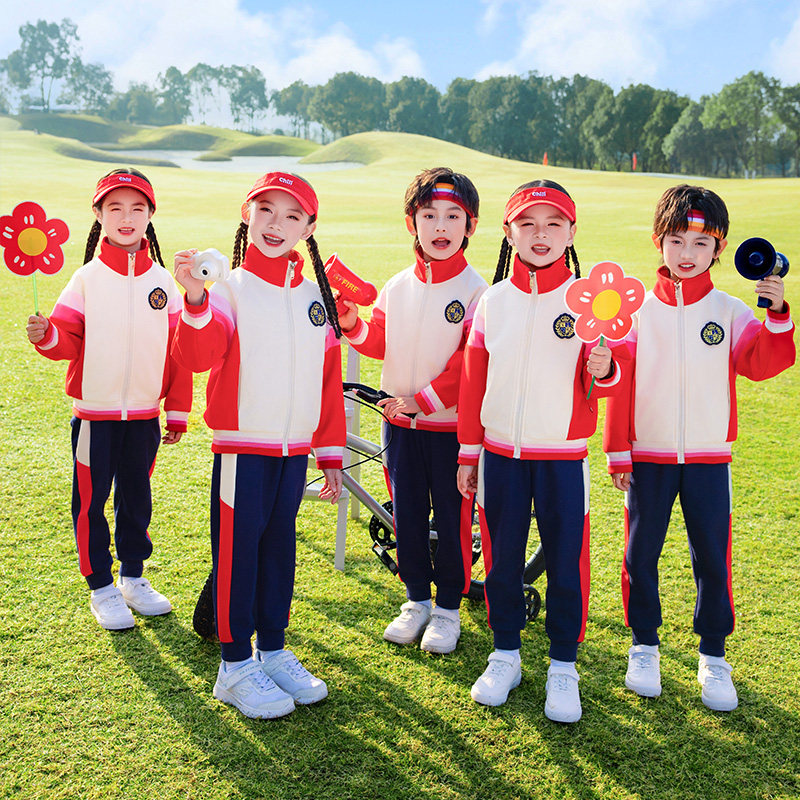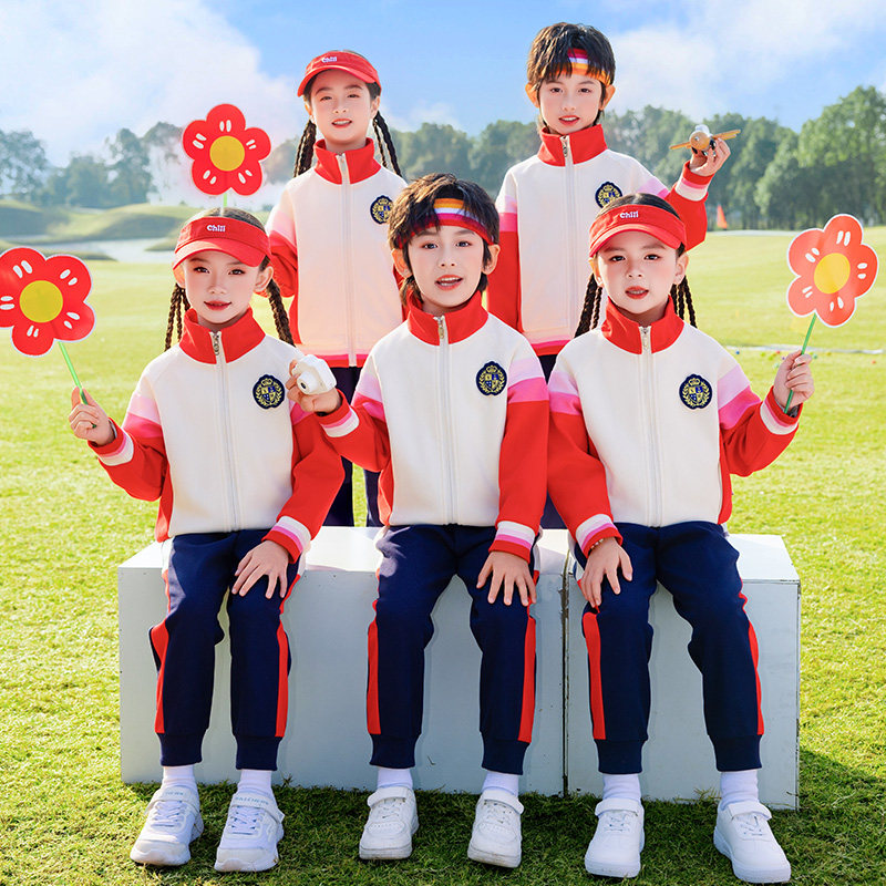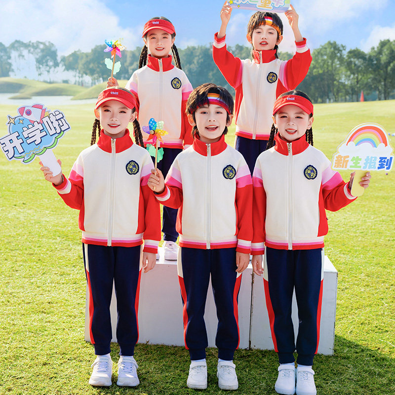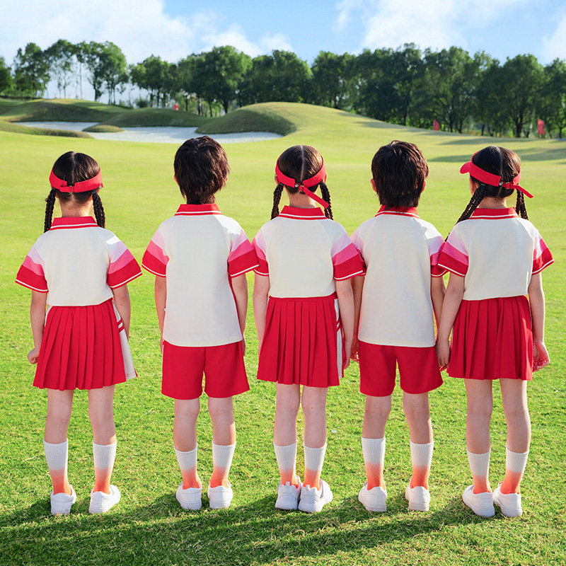 夏季小学生校服红色班服短袖定制套装儿童学院夏天运动幼儿园园服