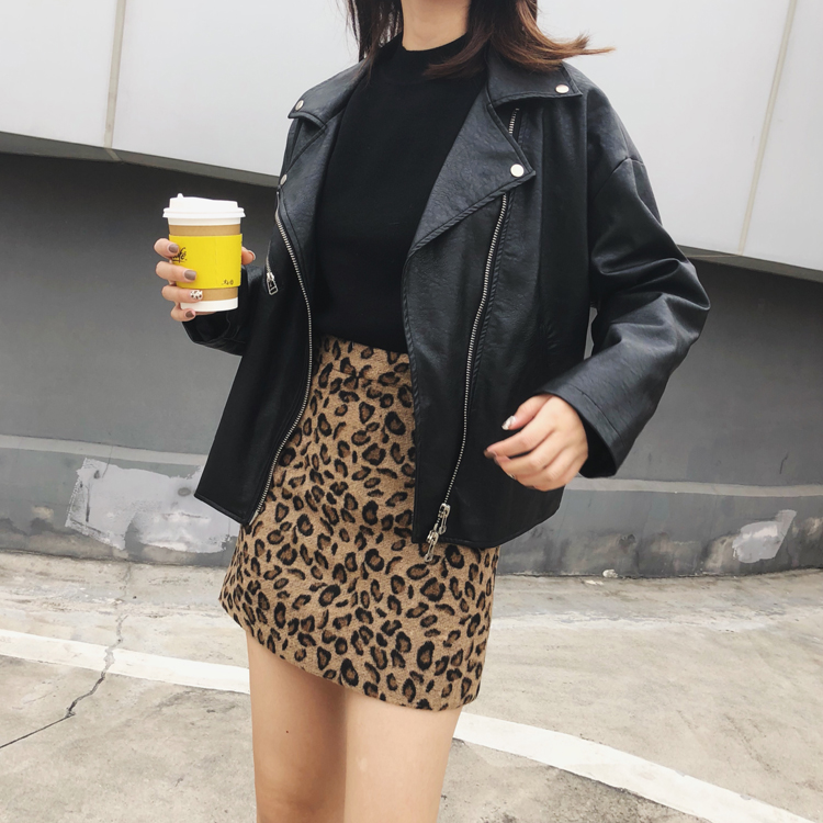 秋冬大码ins毛呢豹纹高腰半身裙 韩版胖mm防走光A字包臀chic短裙