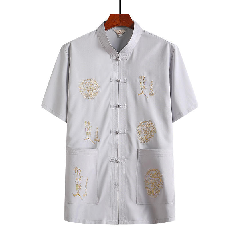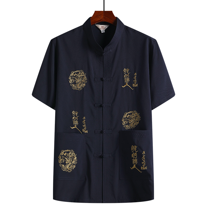 中老年唐装男士短袖夏季汉服爸爸装中国风上衣盘扣爷爷民族风服装
