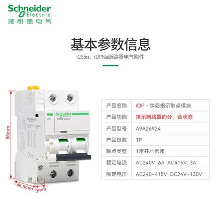 施耐德断路器iOF状态指示接点A9A26924 240-415V空气开关辅助触头