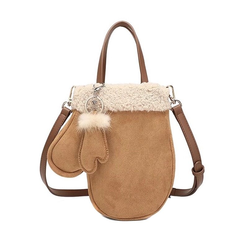 稻草人包包女包2025秋冬新款时尚羊羔毛毛绒手套包复古手提斜挎包