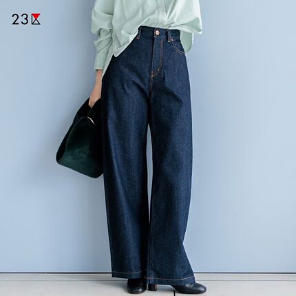 23区日系秋季通勤宽松棉混纺水洗直筒牛仔长裤休闲阔腿裤商场同款