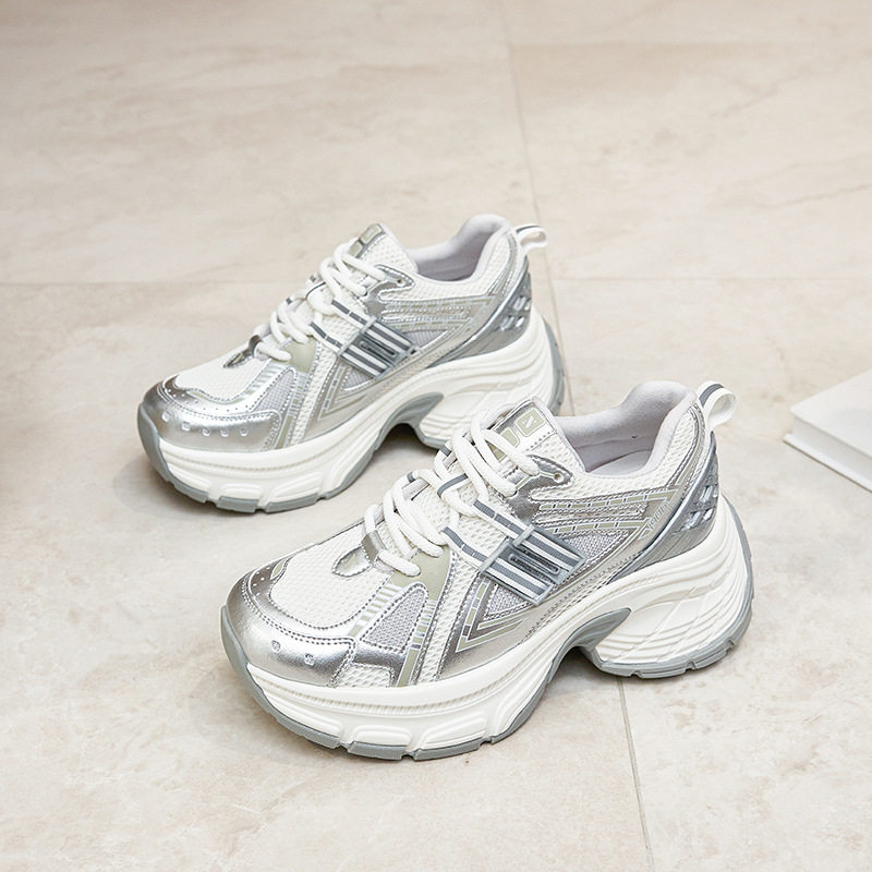 增高7cm小码女鞋31/32/33/34码加绒运动休闲老爹鞋女2025新款冬季