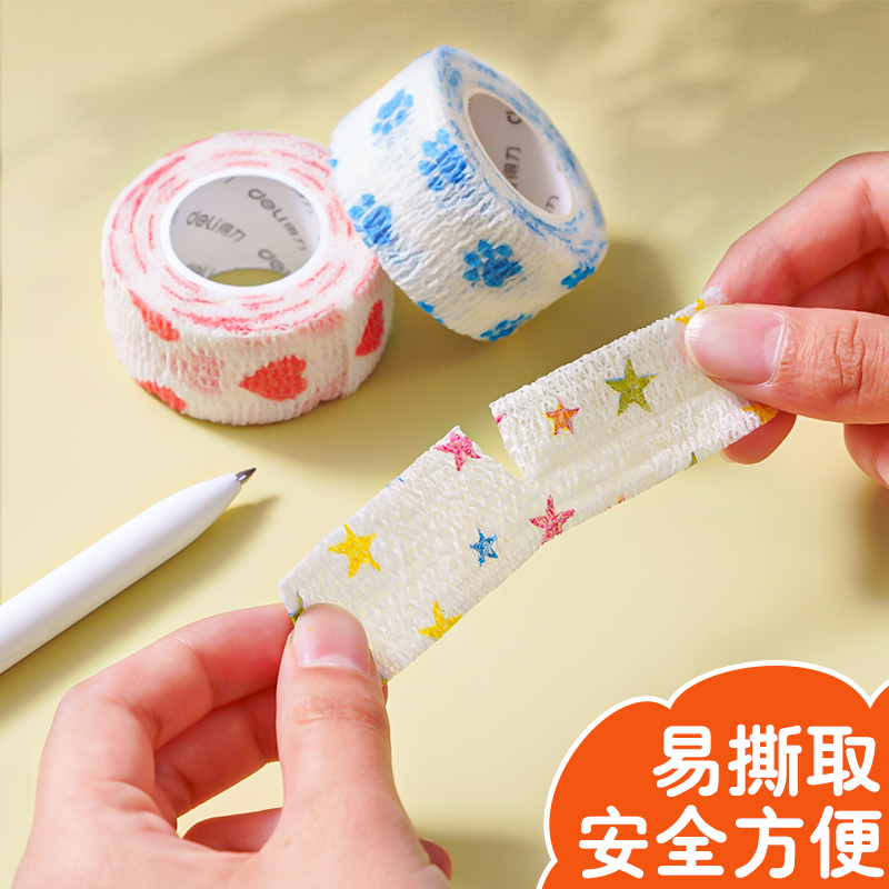 得力学生写字护指绷带自粘防磨老茧手指关节保护套防水易撕弹性护手握笔器固定运动手指胶带可爱学习缠手指套