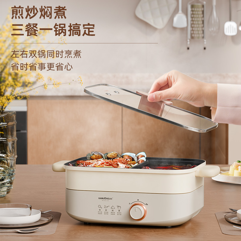 金灶A206 不粘锅鸳鸯锅火锅家用多功能电煮锅炒煎煮焖大容量电锅