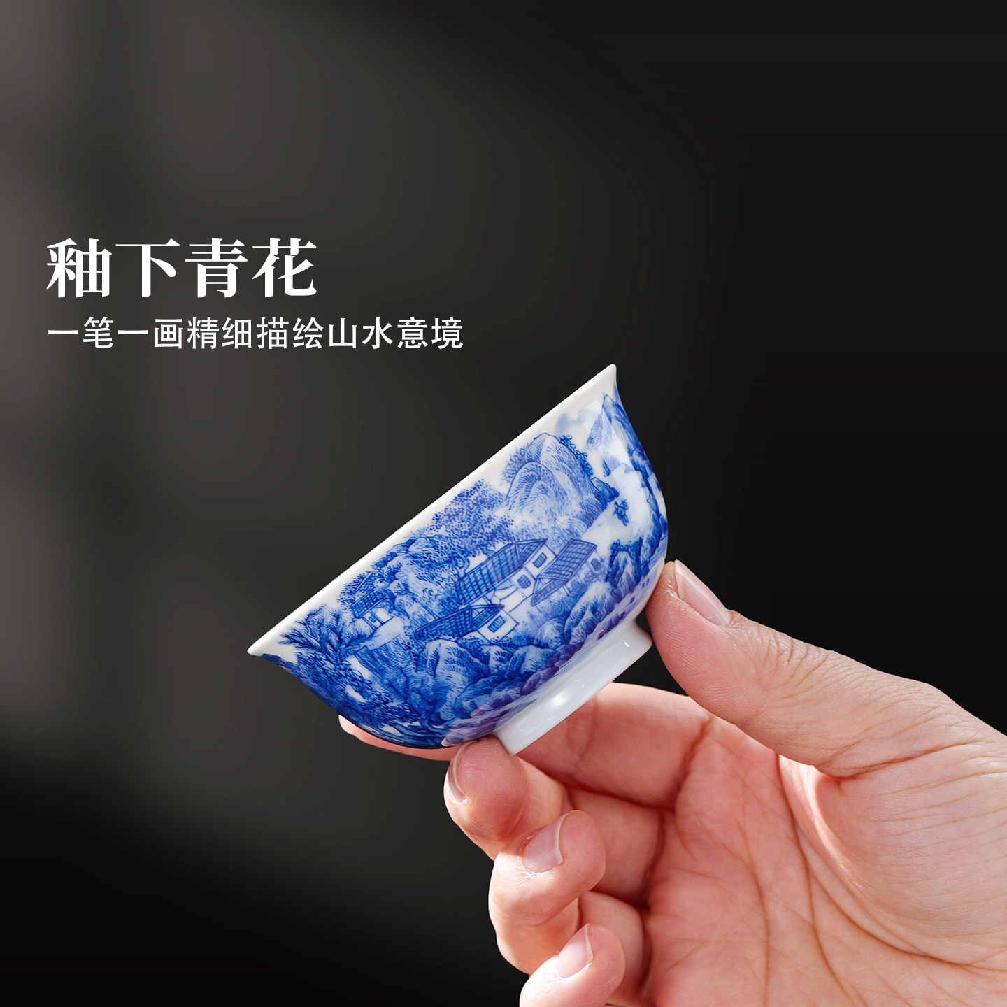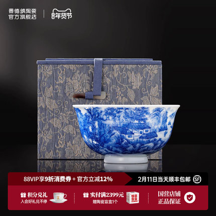 景德镇官方陶瓷青花茶具礼盒中式单人茶杯主人杯办公杯新年送礼
