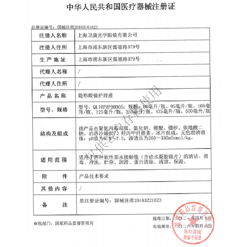 卫康清凉护理液500ml近视隐形眼镜护理液美瞳护理液清洁液保湿zy