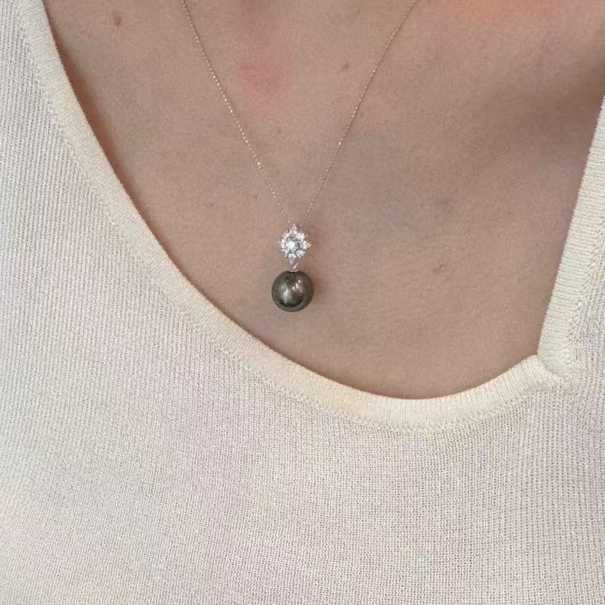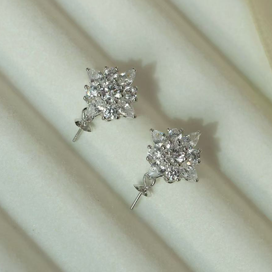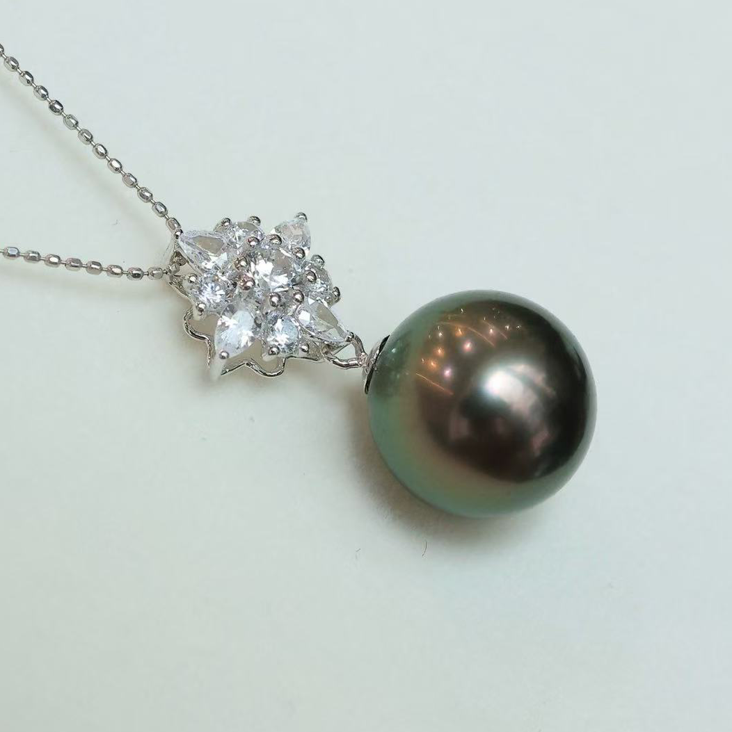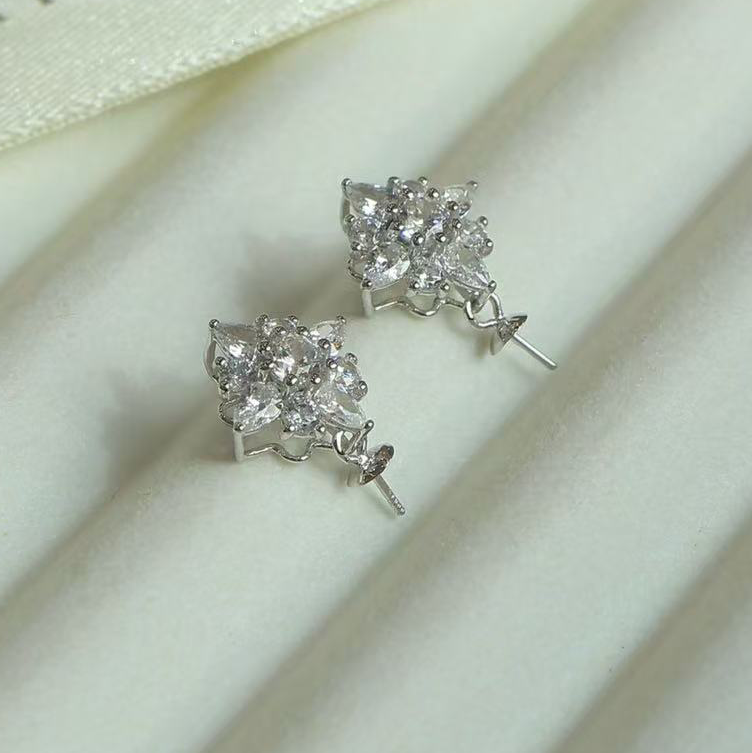 铂金PT900锆石10-13MM海水珍珠吊坠配件经典繁花裸珠diy挂件空托