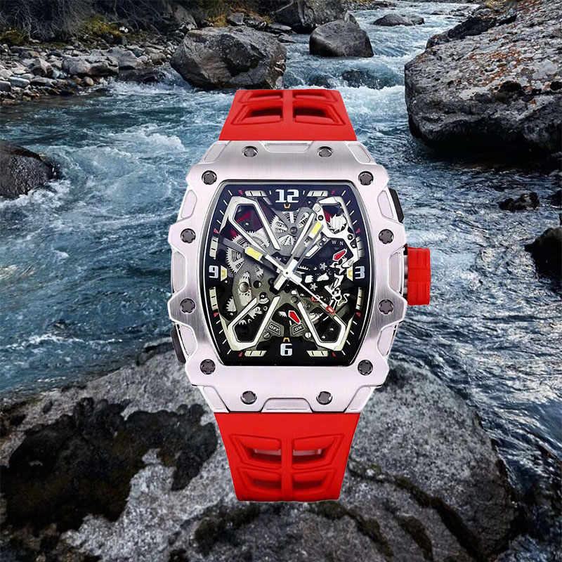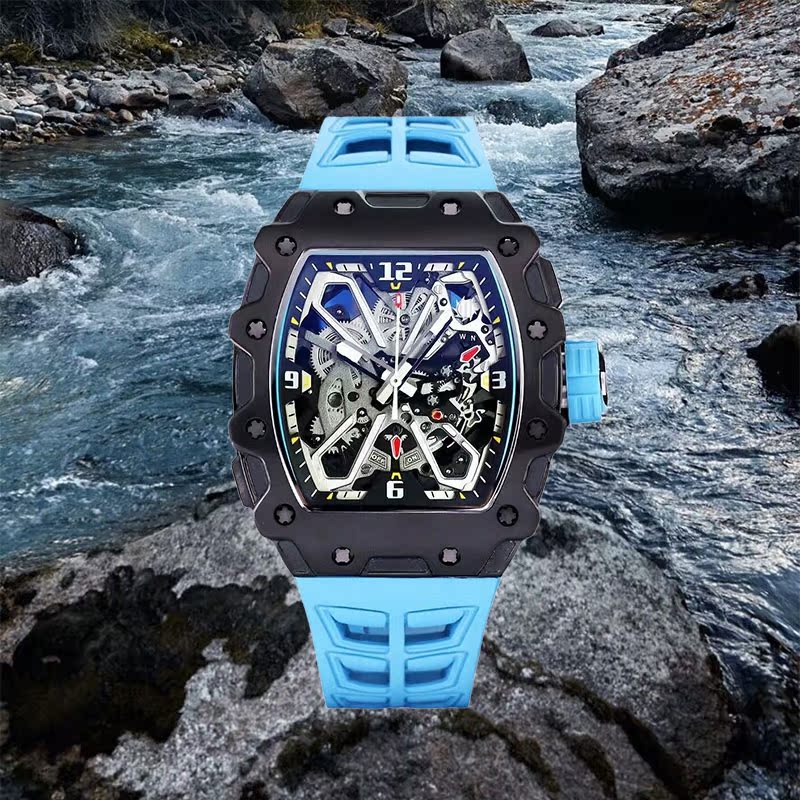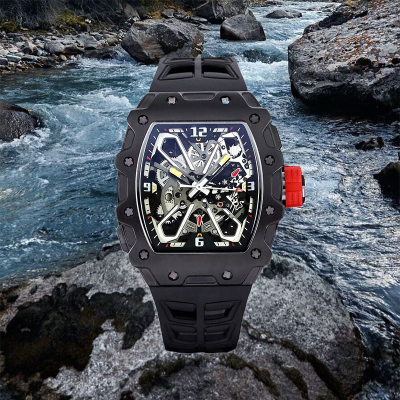 迈凯伦同款男士时尚休闲酒桶形大表盘手表男个性镂空全自动机械表