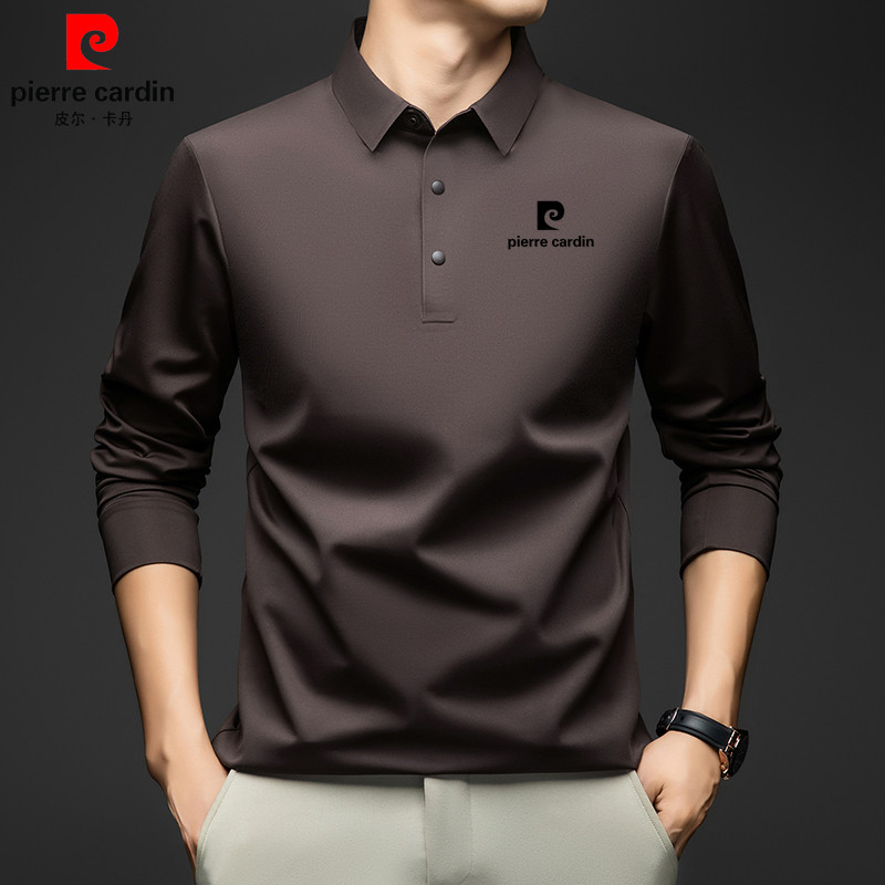 皮尔卡丹桑蚕丝长袖POLO衫男士2025秋季新款无痕免烫翻领T恤上衣