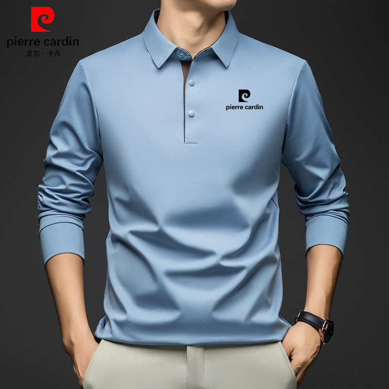 皮尔卡丹男士桑蚕丝长袖POLO衫