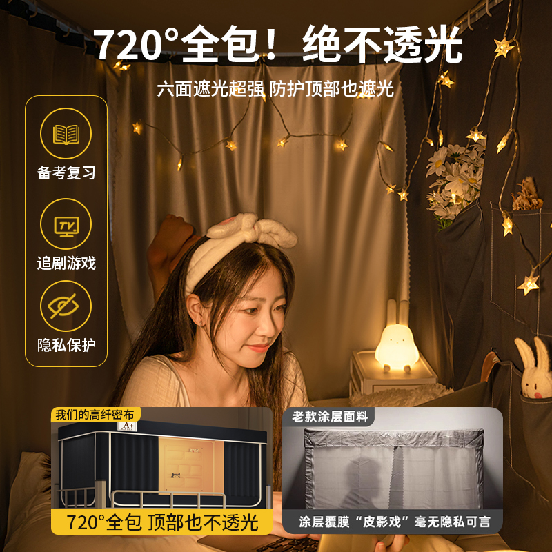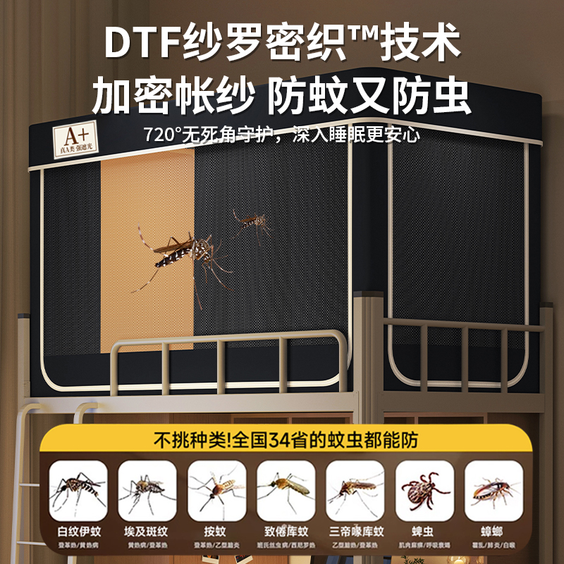 无印良品大学生宿舍蚊帐床帘一体式免安装寝室单人床幔上铺强遮光