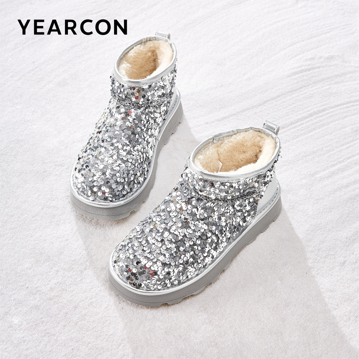 意尔康官方正品女鞋女靴短靴马丁靴加绒冬季雪地靴女棉鞋