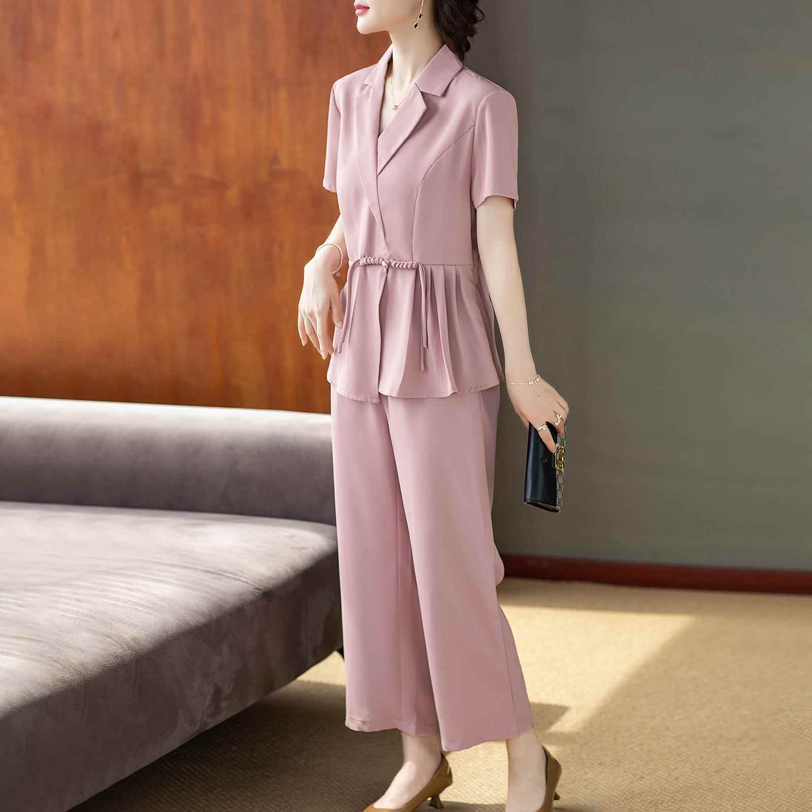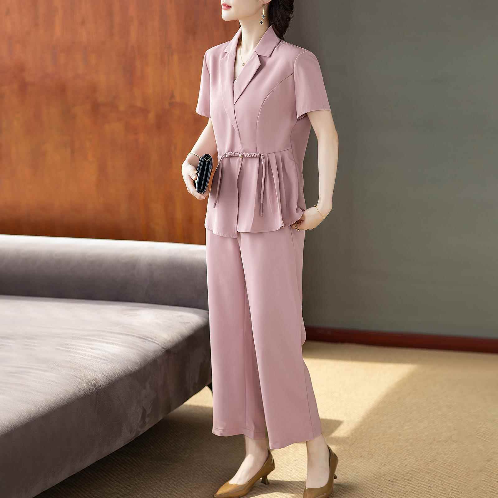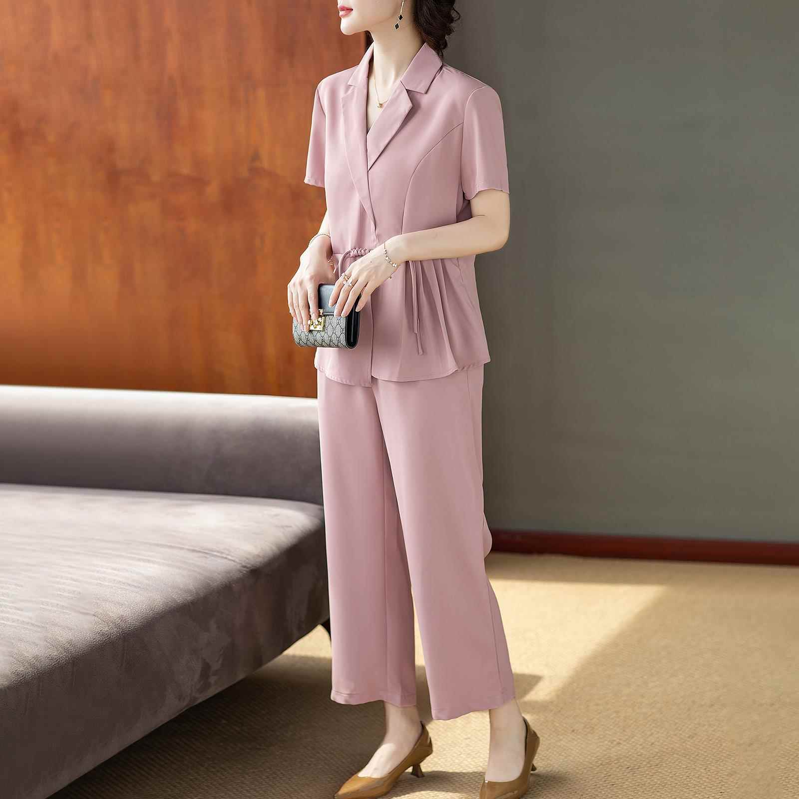 洋气西装领妈妈夏装短袖套装25新款气质贵夫人时尚两件套中老年女