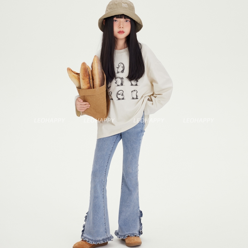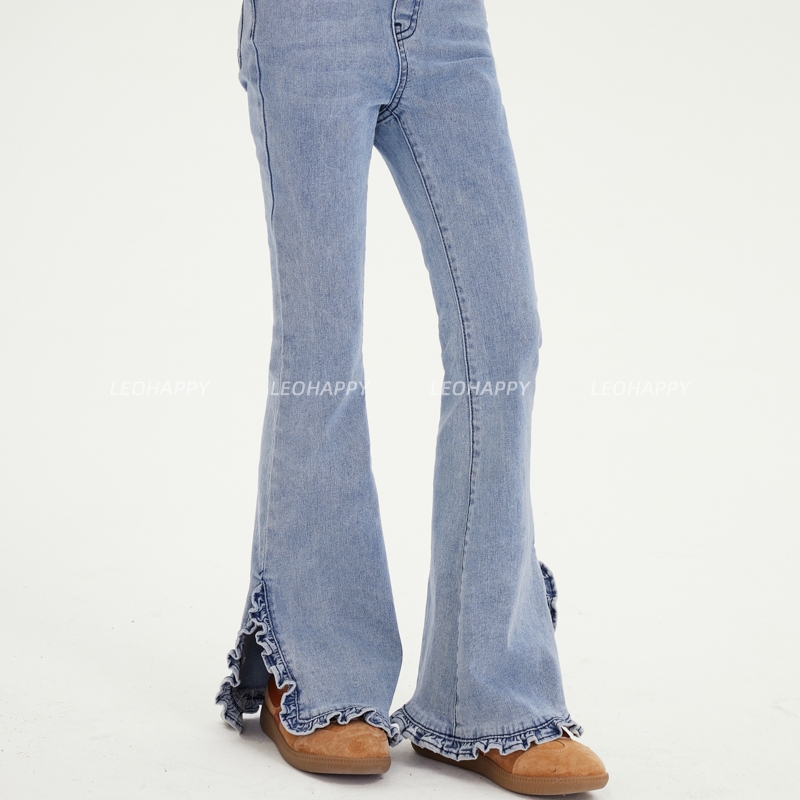 LEOHAPPY女童裤子春季新款儿童牛仔裤弹力洗水喇叭裤大童长裤N