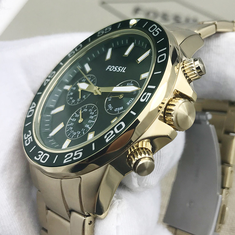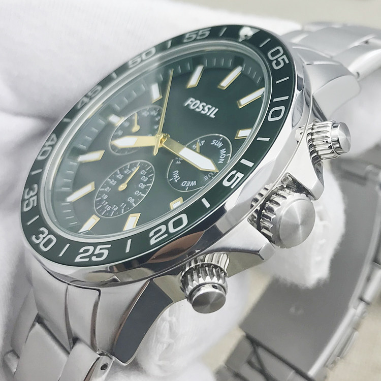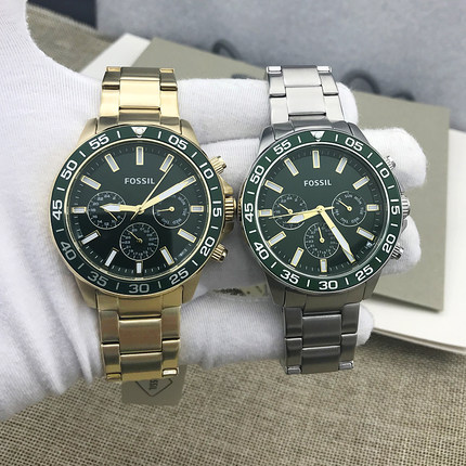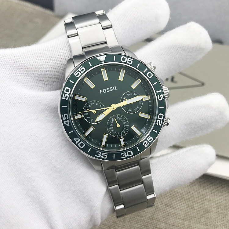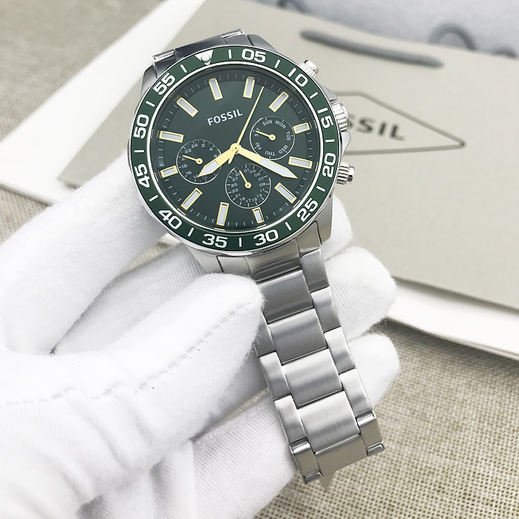 新现货FOSSIL手表不锈钢星期日历水鬼绿系列石英男表BQ2493BQ2492