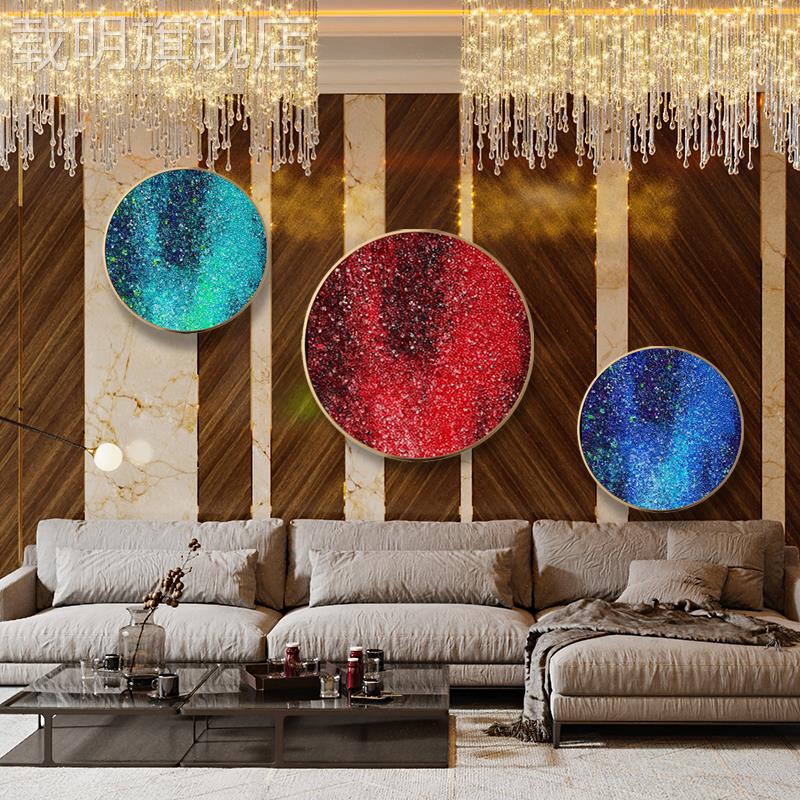 美式现代轻奢装饰画酒店亚克力钻石装置餐厅客厅玄关圆形墙面挂画