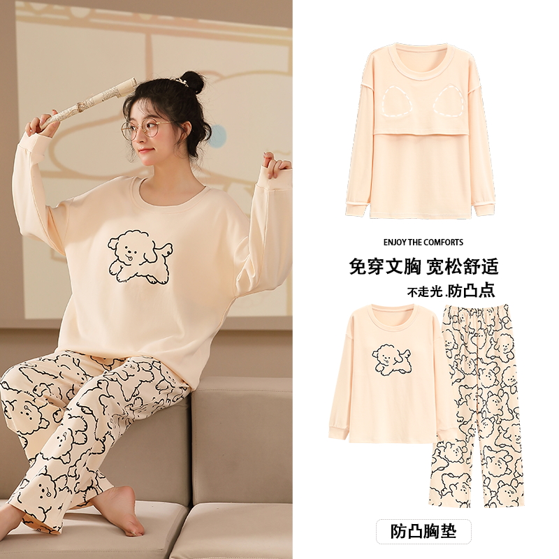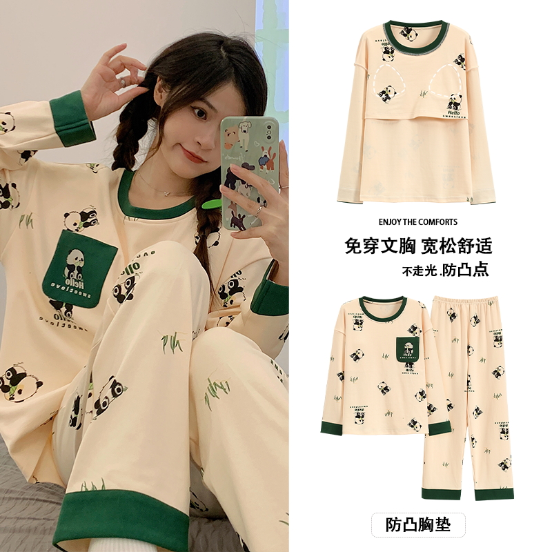 秋冬纯棉带胸垫长袖睡衣套装2023新款卡通女士睡裙宽松大码家居服