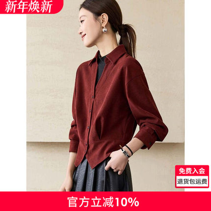 沫晗依美微量羊毛撞色衬衫2025冬季轻通勤拼接假两件高领保暖上衣