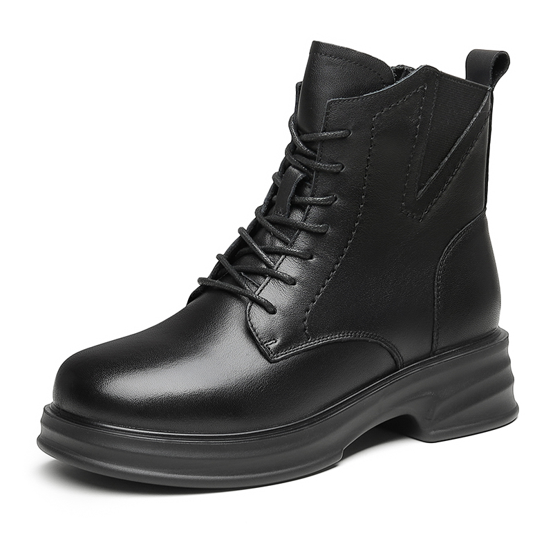 红蜻蜓休闲舒适真皮保暖马丁靴女