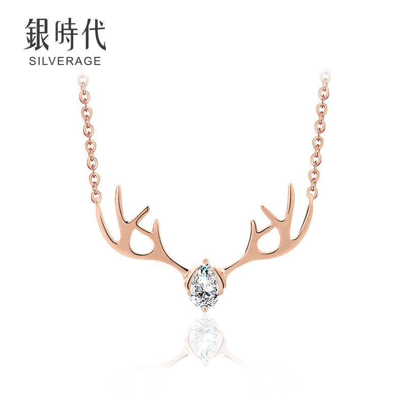 银时代18K玫瑰金一鹿有你项链女一路爱心锁骨链恶魔之眼纯银吊坠