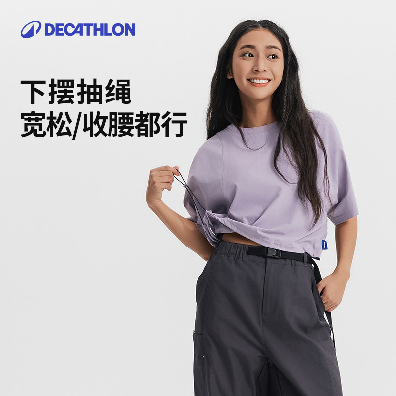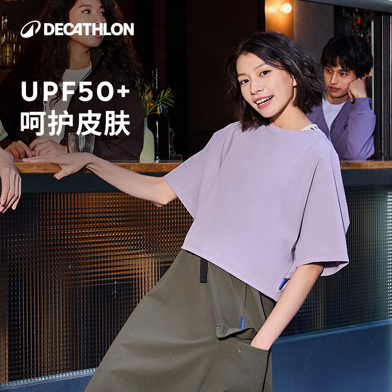 迪卡侬SPW365541运动T恤女夏季防晒凉感上衣宽松透气健身衣SAX2