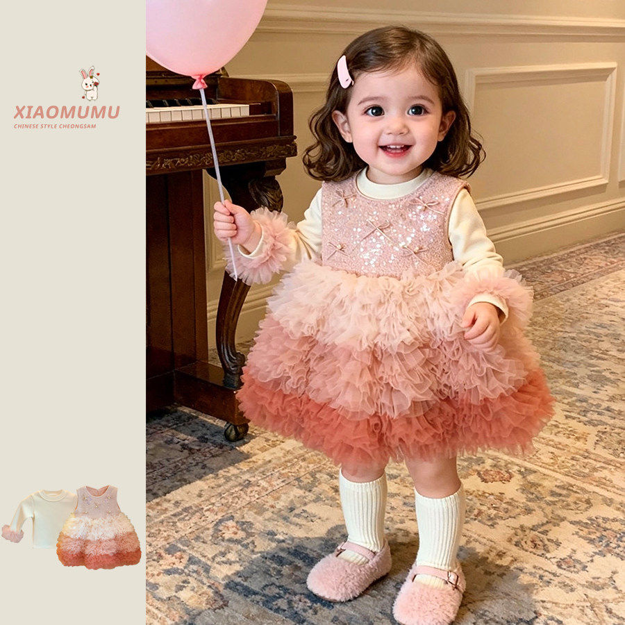 周岁礼服宝宝生日连衣裙2026新款冬女童公主裙加绒背心裙派对洋气