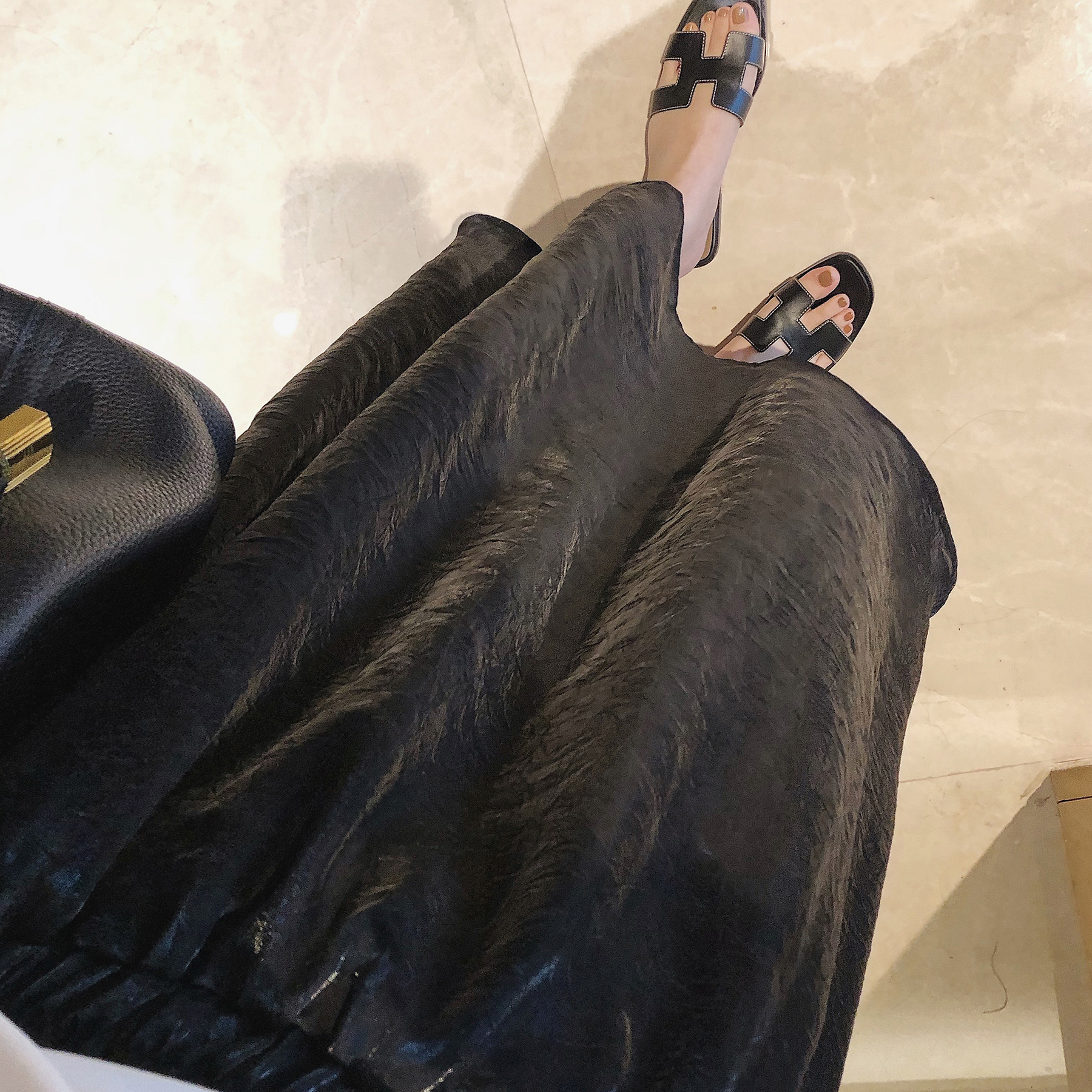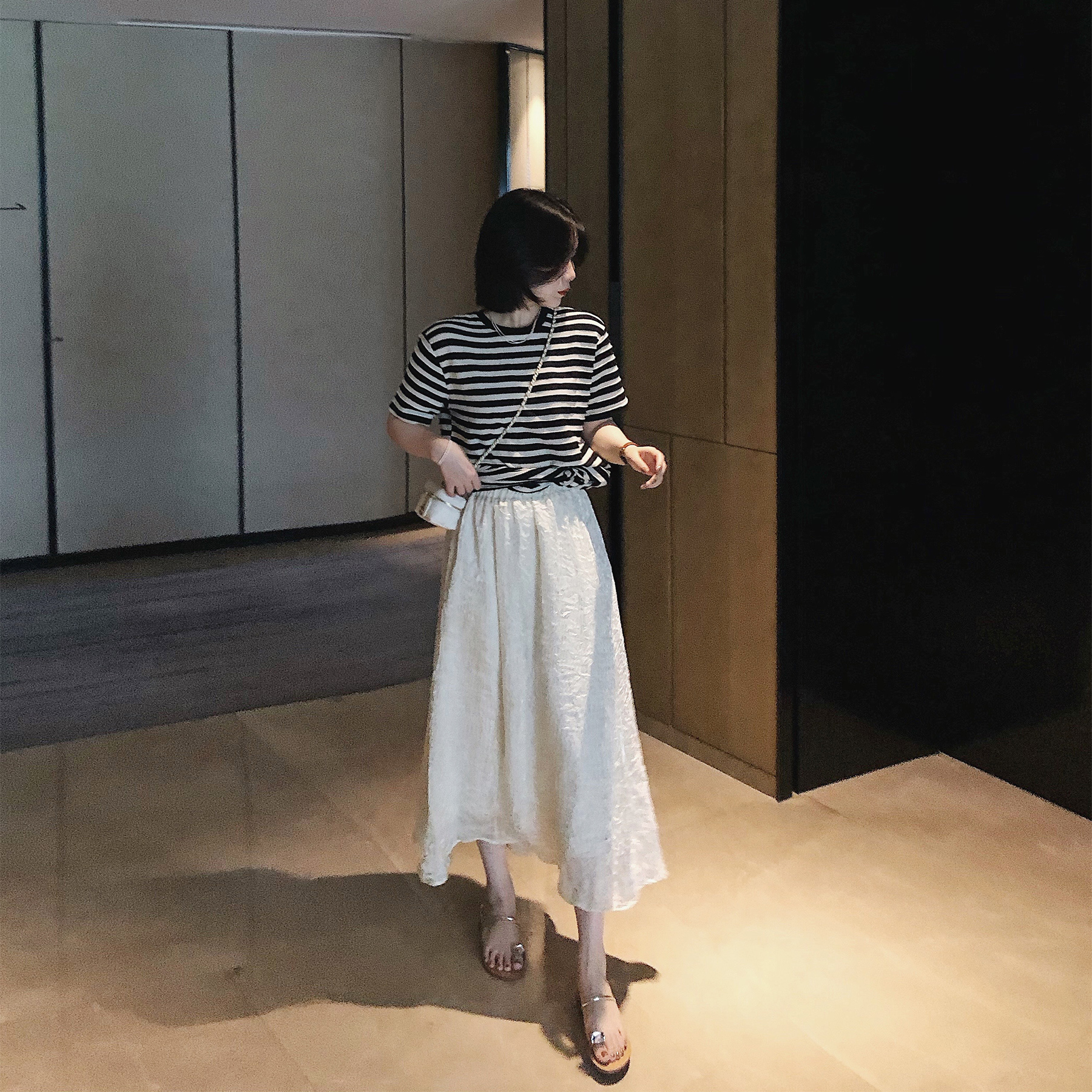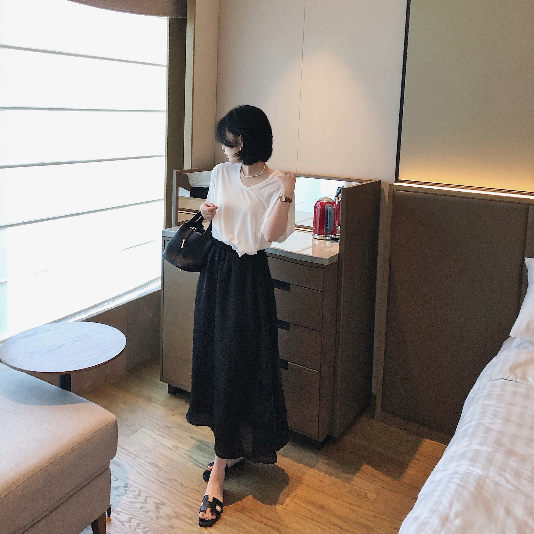 misslady韩国松紧法式高腰夏季2025年雪纺褶皱半身裙伞裙中长款