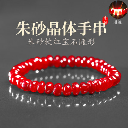 朱砂手链铜仁原石晶体软红宝石颗颗通透手串收藏级送礼男女本命年