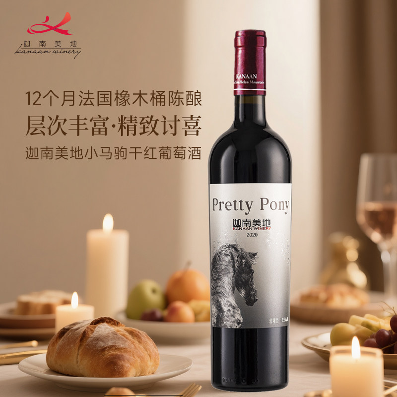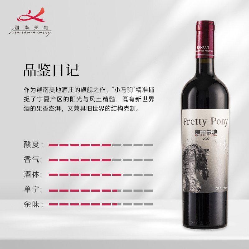 【官方正品】迦南美地小马驹赤霞珠美乐干红葡萄酒宁夏红酒2020年