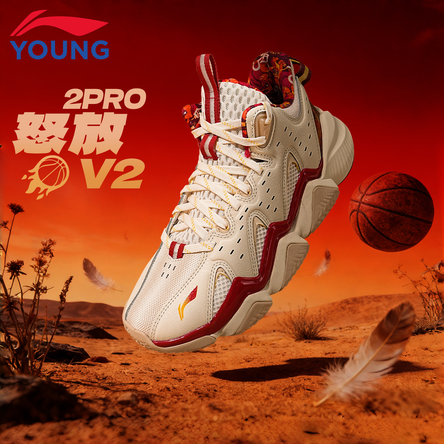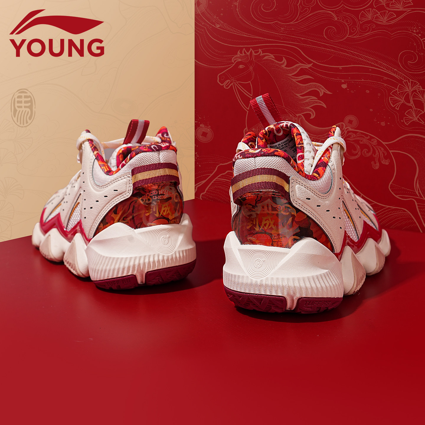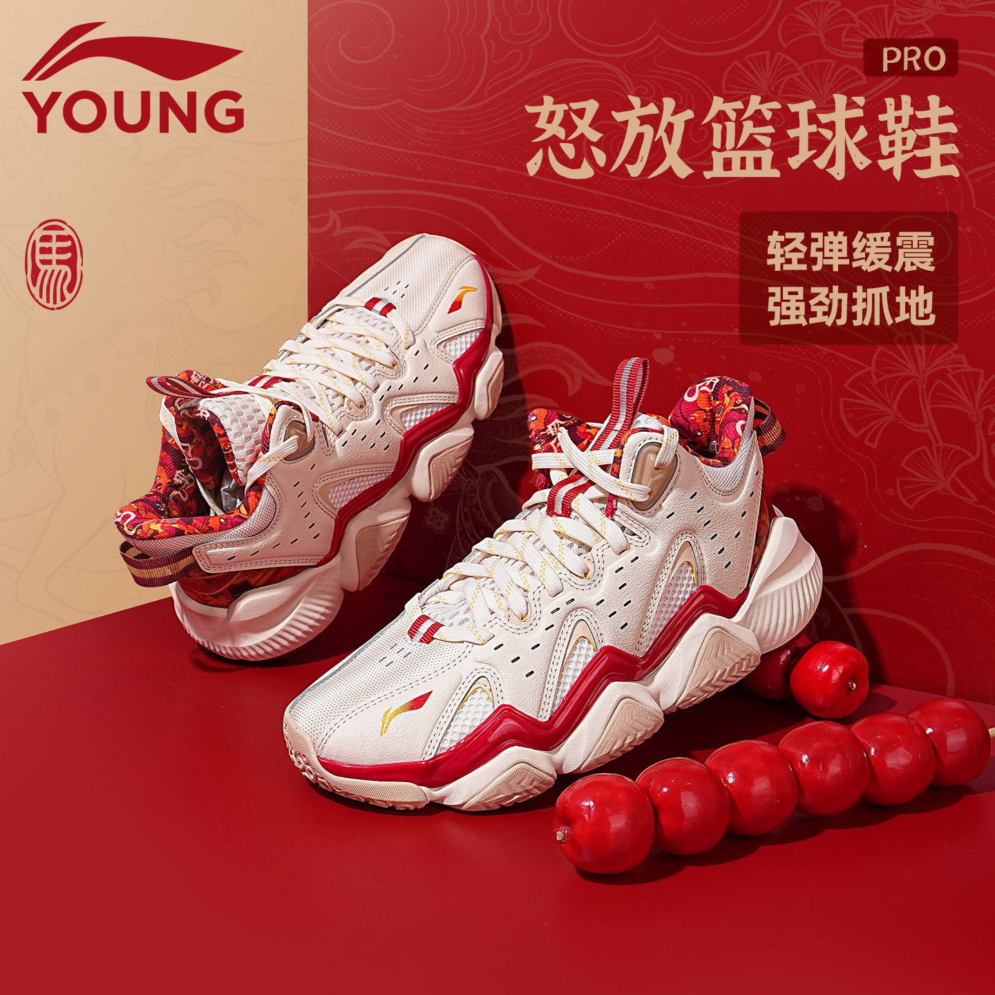 李宁童鞋儿童篮球鞋男大童鞋子2026怒放红色本命年过年运动鞋