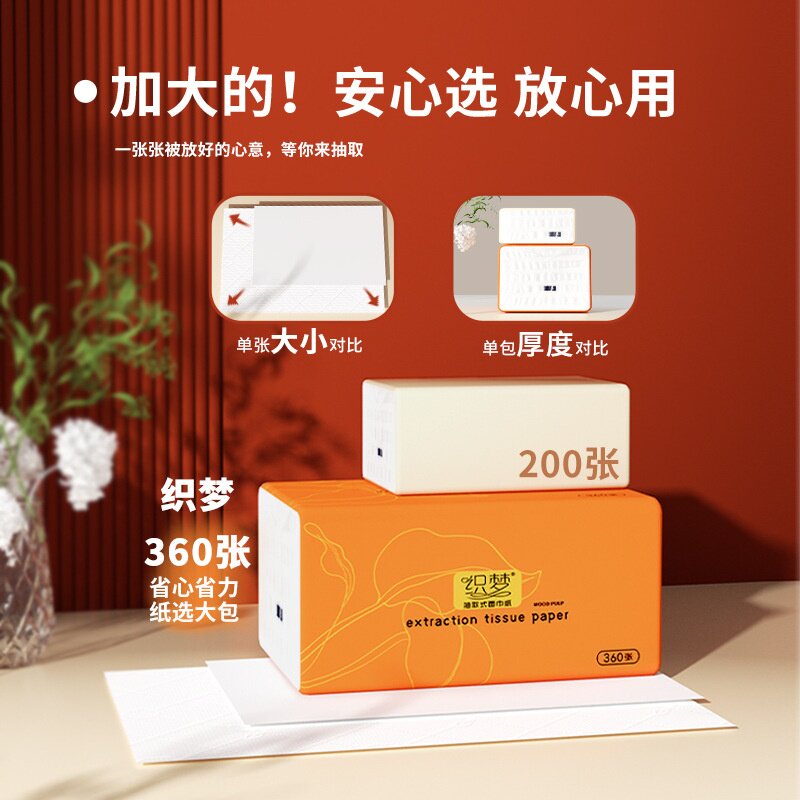 360张软包大号抽纸巾餐巾纸大尺寸擦手纸家庭实惠装软包卫生纸巾
