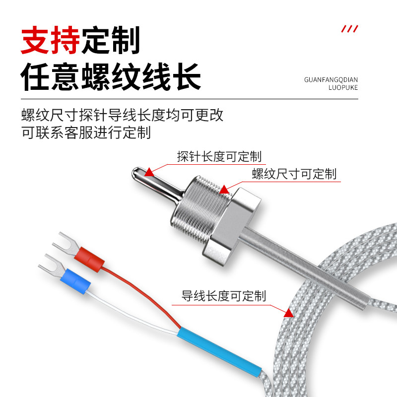 管道锅炉全密封防漏水热电偶K型温度探头PT100热敏电阻温度传感器
