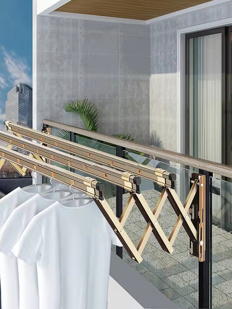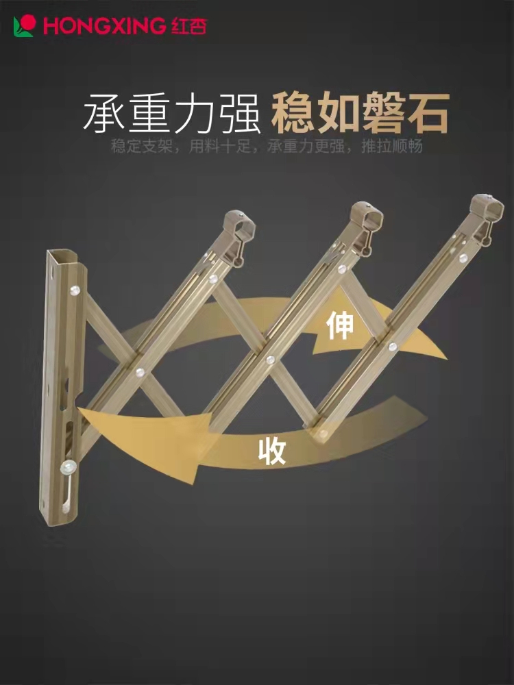 红杏813阳台折叠晾衣架户外伸缩晒衣架家用推拉式窗外室外凉衣杆