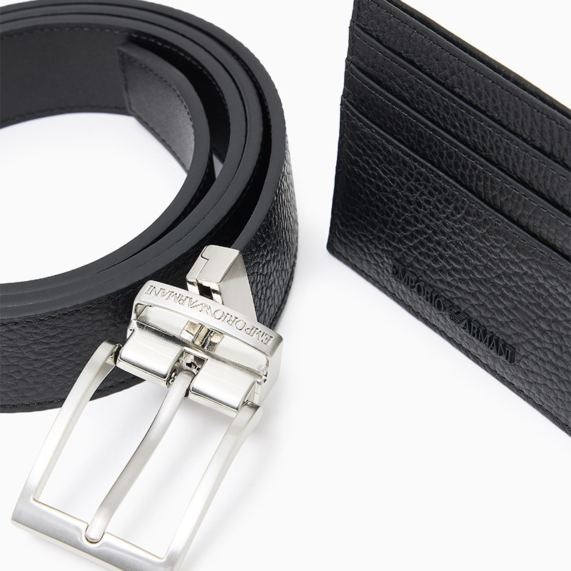【新年礼物】EMPORIO ARMANI/阿玛尼男商务休闲腰带卡夹套装官方
