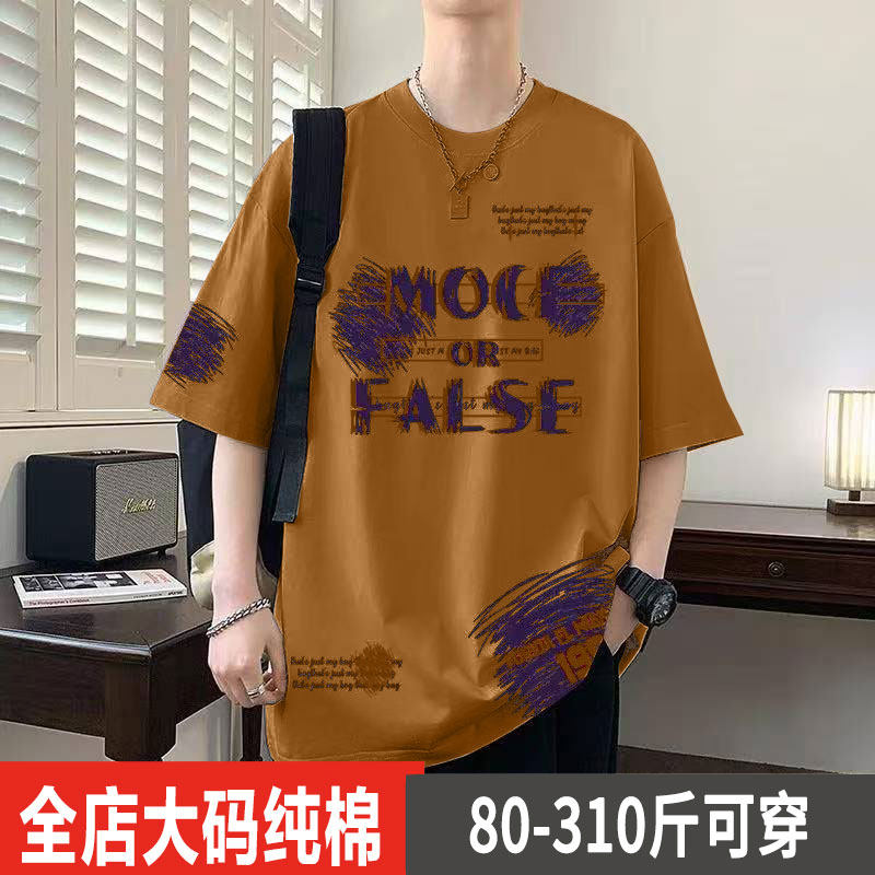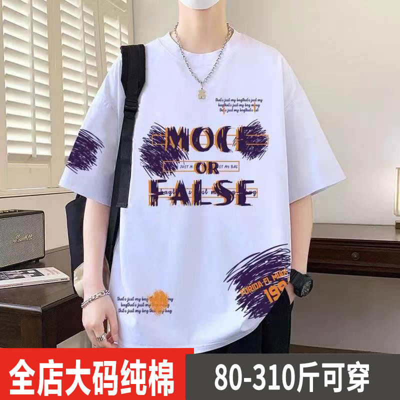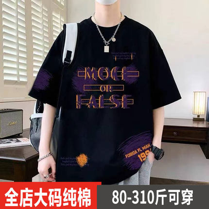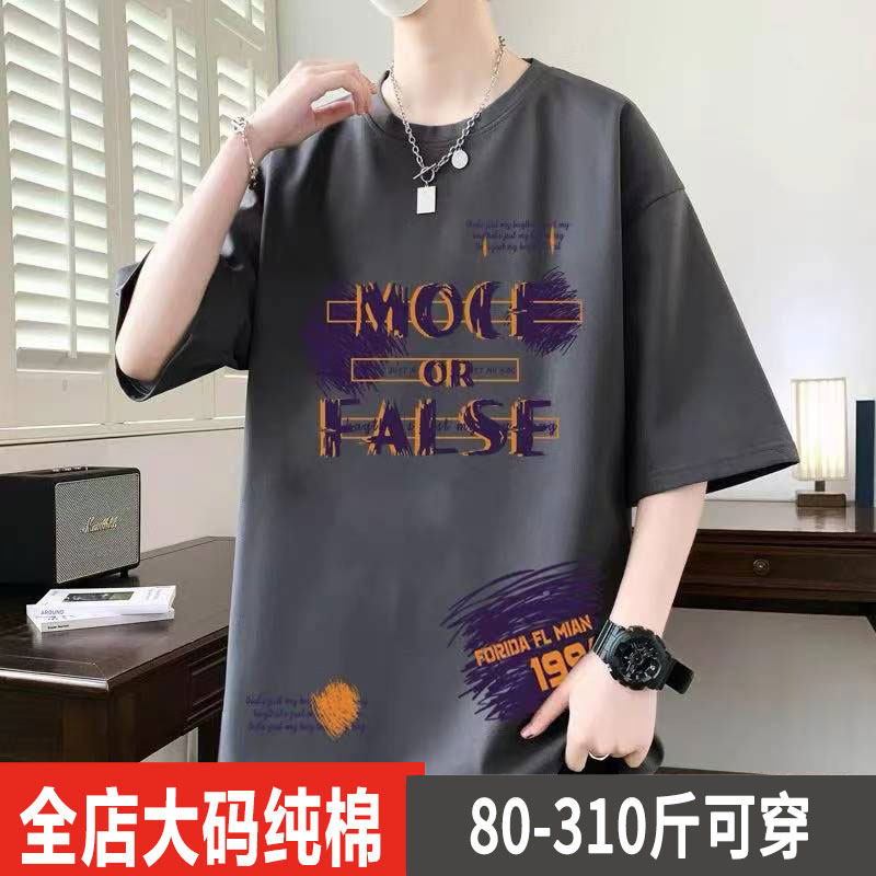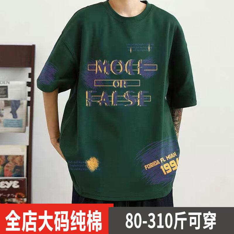 2025夏季胖子特大码纯棉短袖t恤男士加肥加大宽松300斤半袖上衣潮