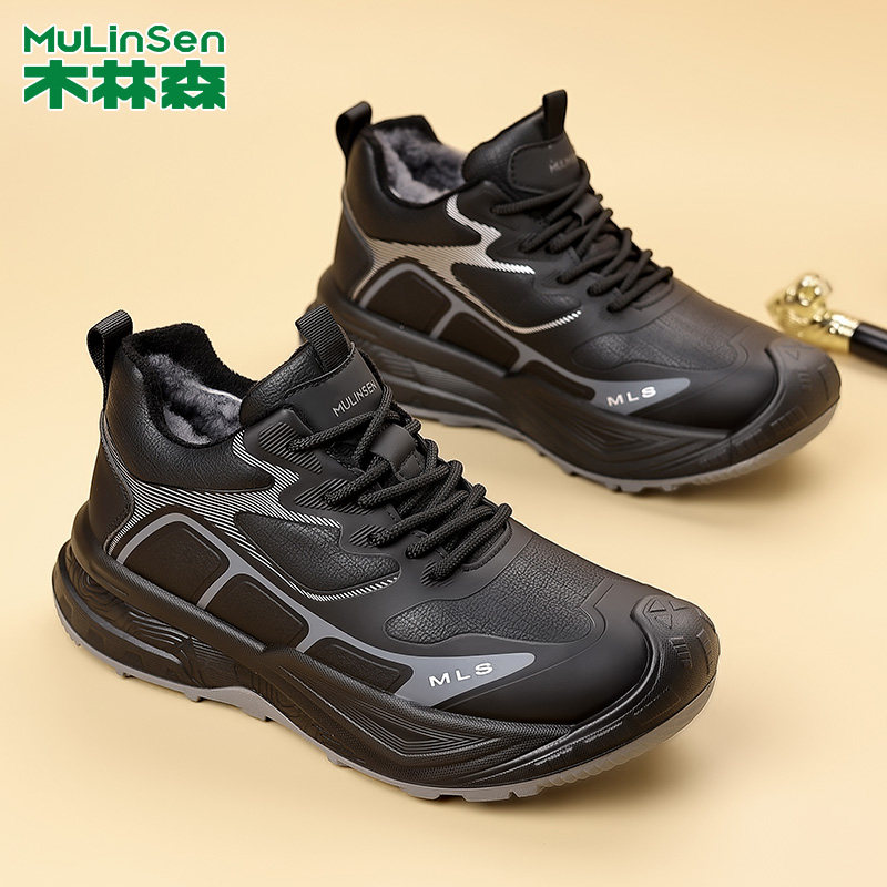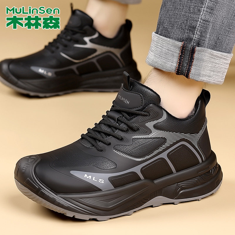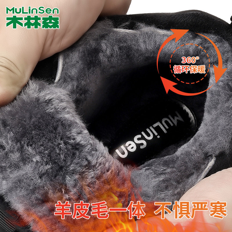 木林森棉鞋男2025冬季羊毛靴加绒加厚保暖雪地靴皮毛一体休闲皮鞋