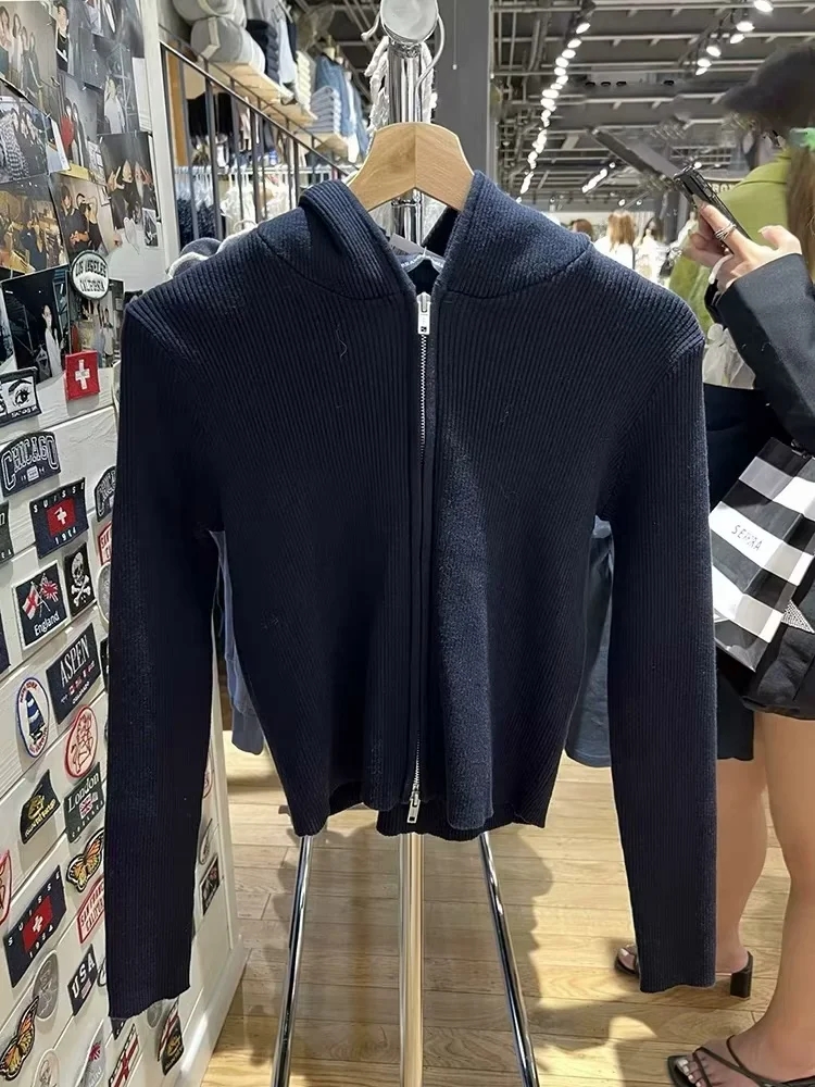 Brandy Girl美式bm针织短款修身拉链长袖连帽毛衣外套上衣外套女