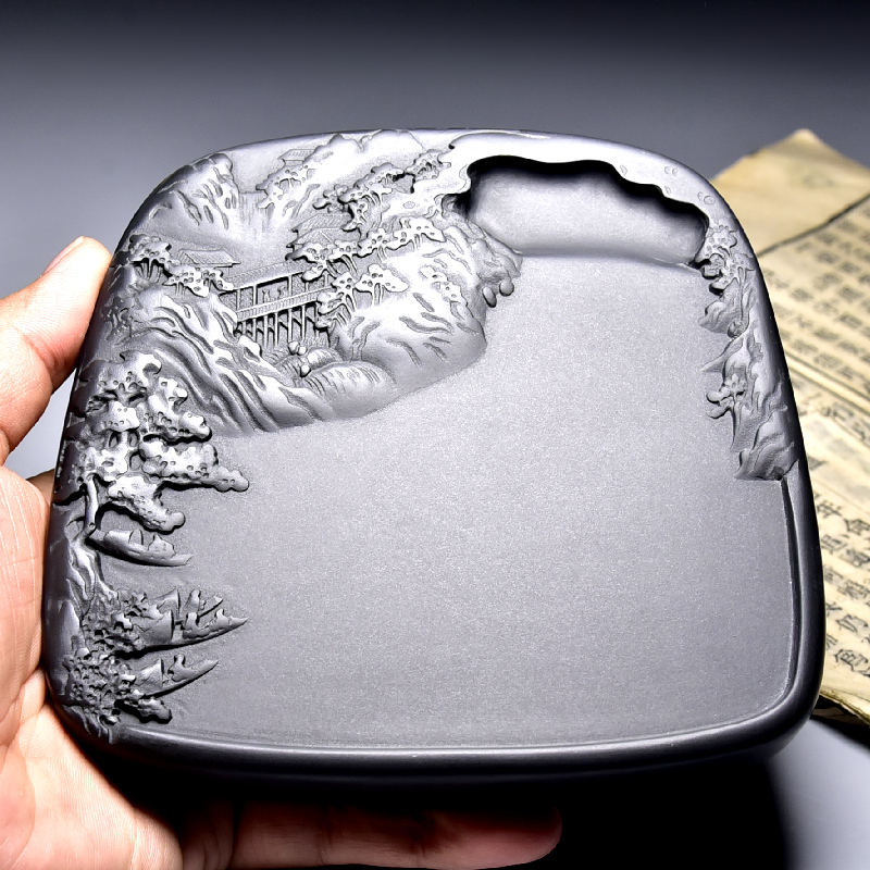 极速名师作品中国歙砚精品 渔歌唱晚 老坑砚台原石收藏.送礼端砚