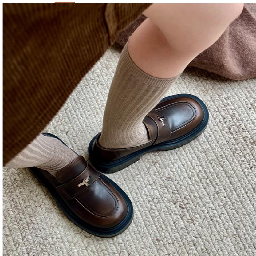 unfolio25新款十字金属扣饰乐福鞋厚底粗跟玛丽珍皮鞋女