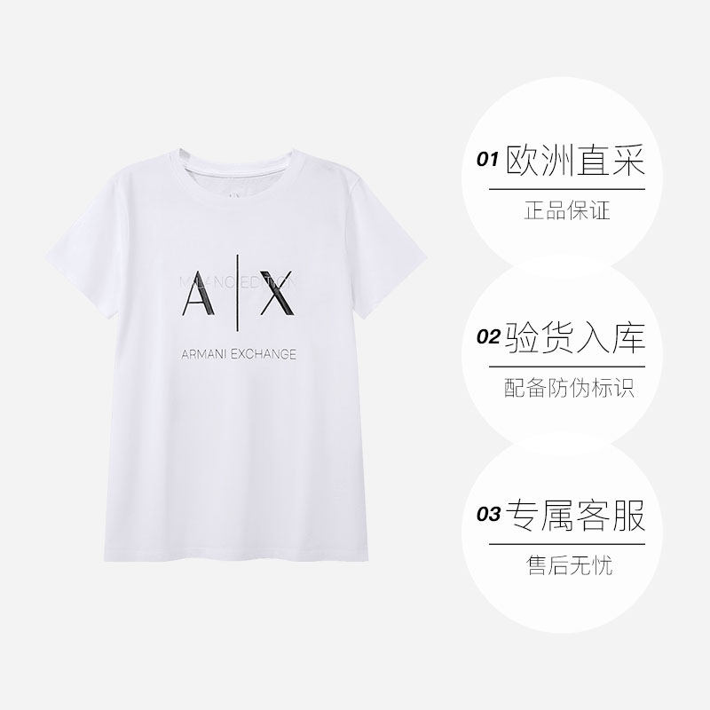 【自营】阿玛尼 女士宽松版圆领短袖T恤 3DYT36 YJ3RZ女装