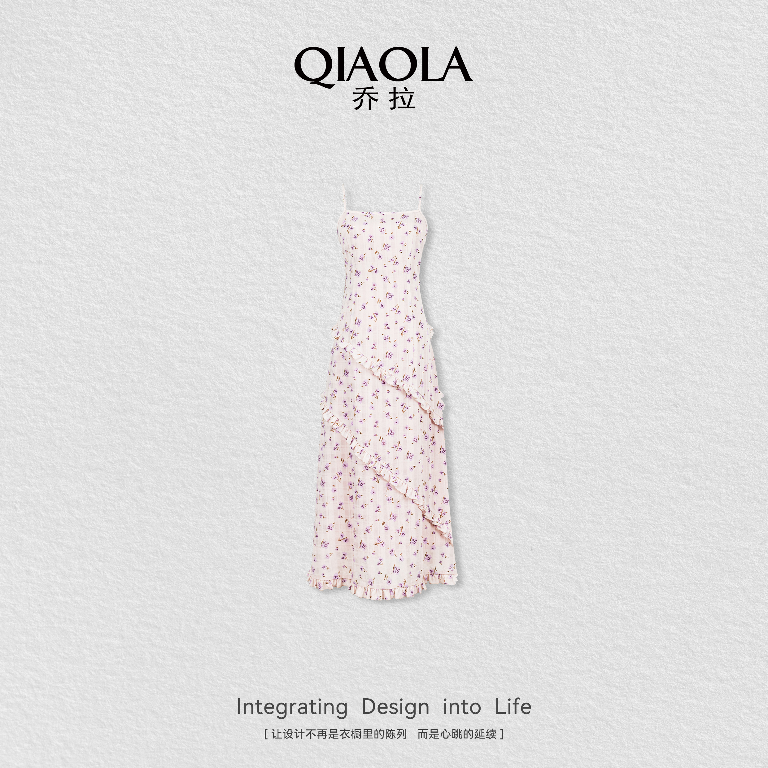 乔拉【漫花沁粉】夏季新款百搭显瘦紫色吊带连衣裙开衫时尚套装女