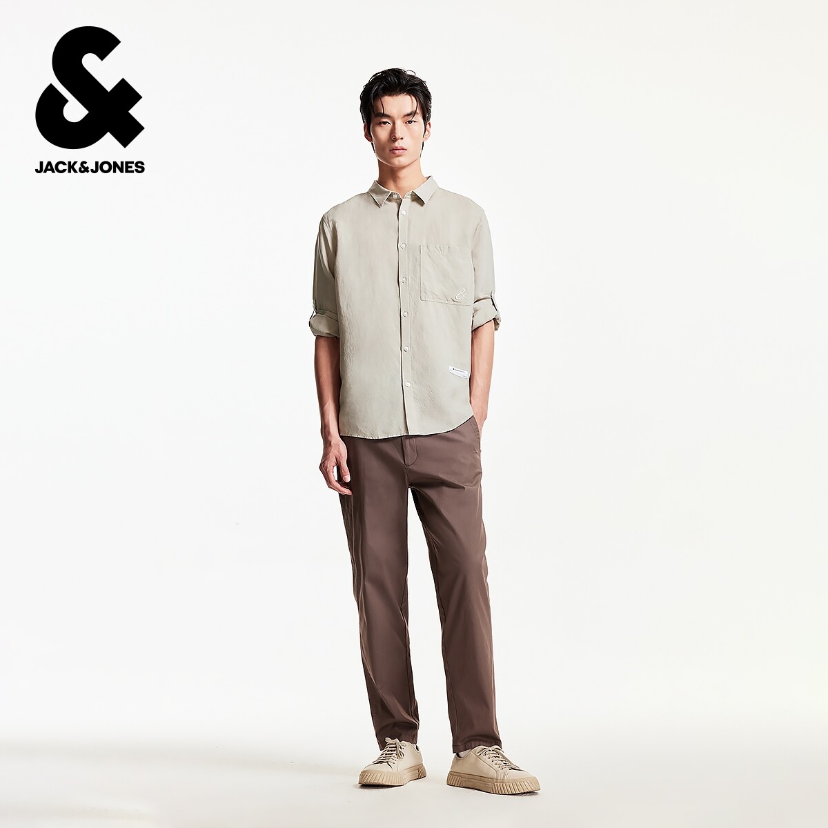 杰克琼斯夏季翻领领口时尚潮流纽扣门禁单侧贴袋字母贴布衬衫男装