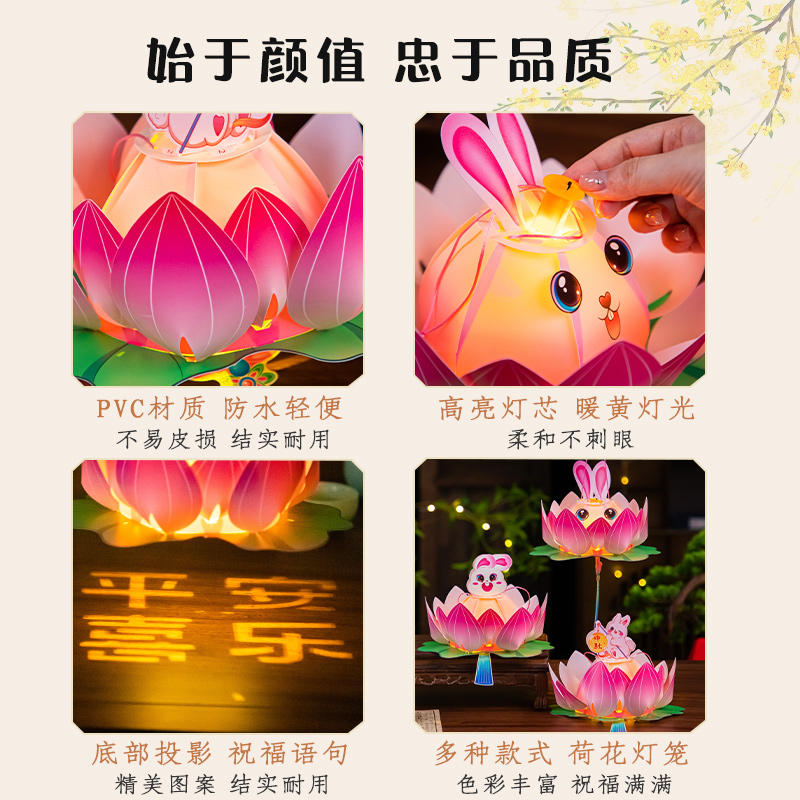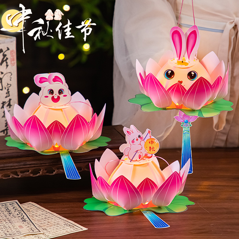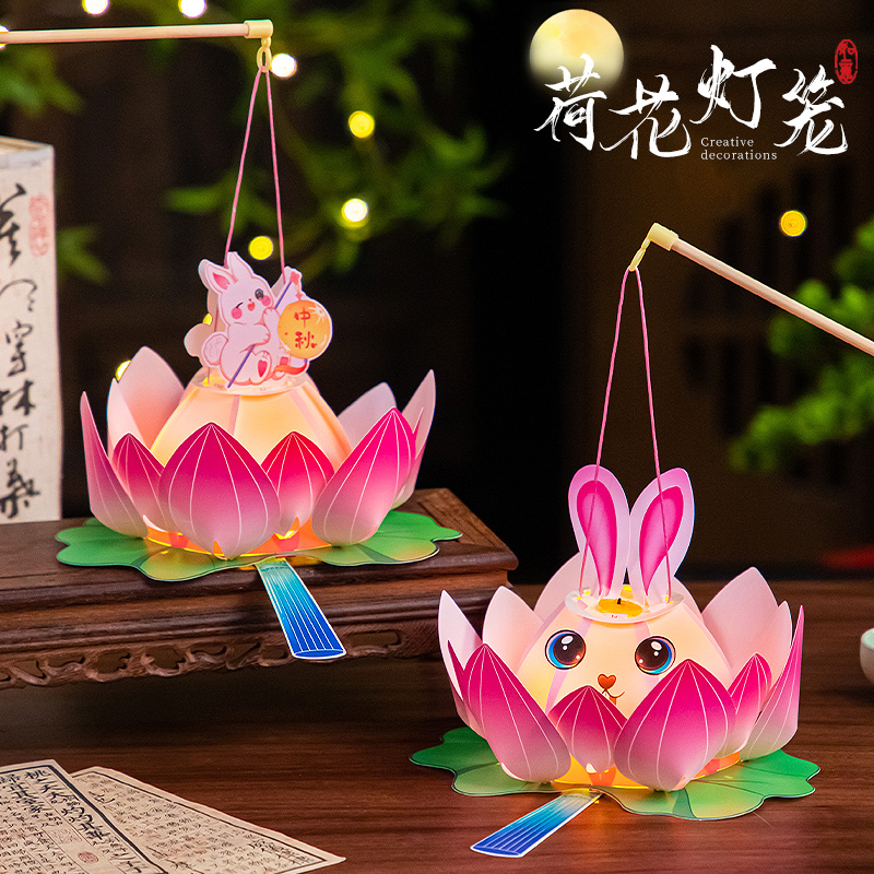 中秋节灯笼儿童手提兔子荷花灯古风花灯挂饰手工diy材料包莲花灯